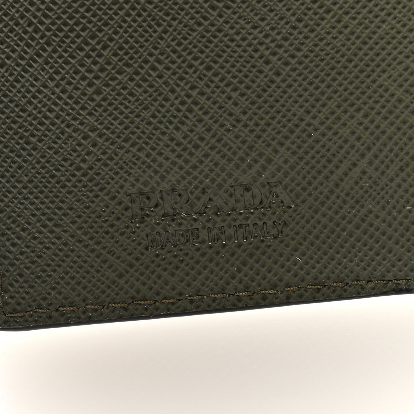 This is an authentic PRADA Saffiano Zip Top Compact Wallet in Dark Green. This wallet is crafted of green saffiano cross-grain leather. The wallet snaps open to a matching leather interior with card slots, a billfold, and a zipper compartment.Follow this item for alerts. Prada is a registered trademark of Prada. FASHIONPHILE is not affiliated with Prada.