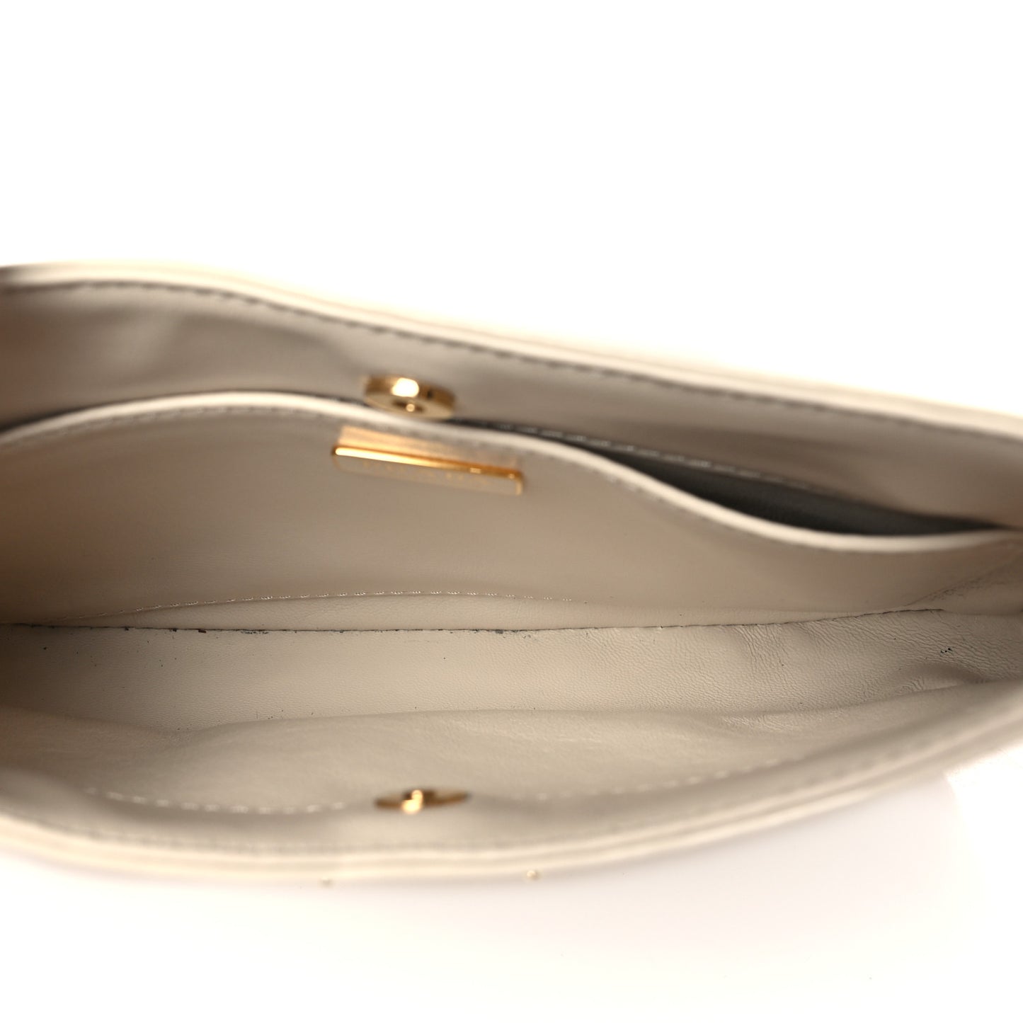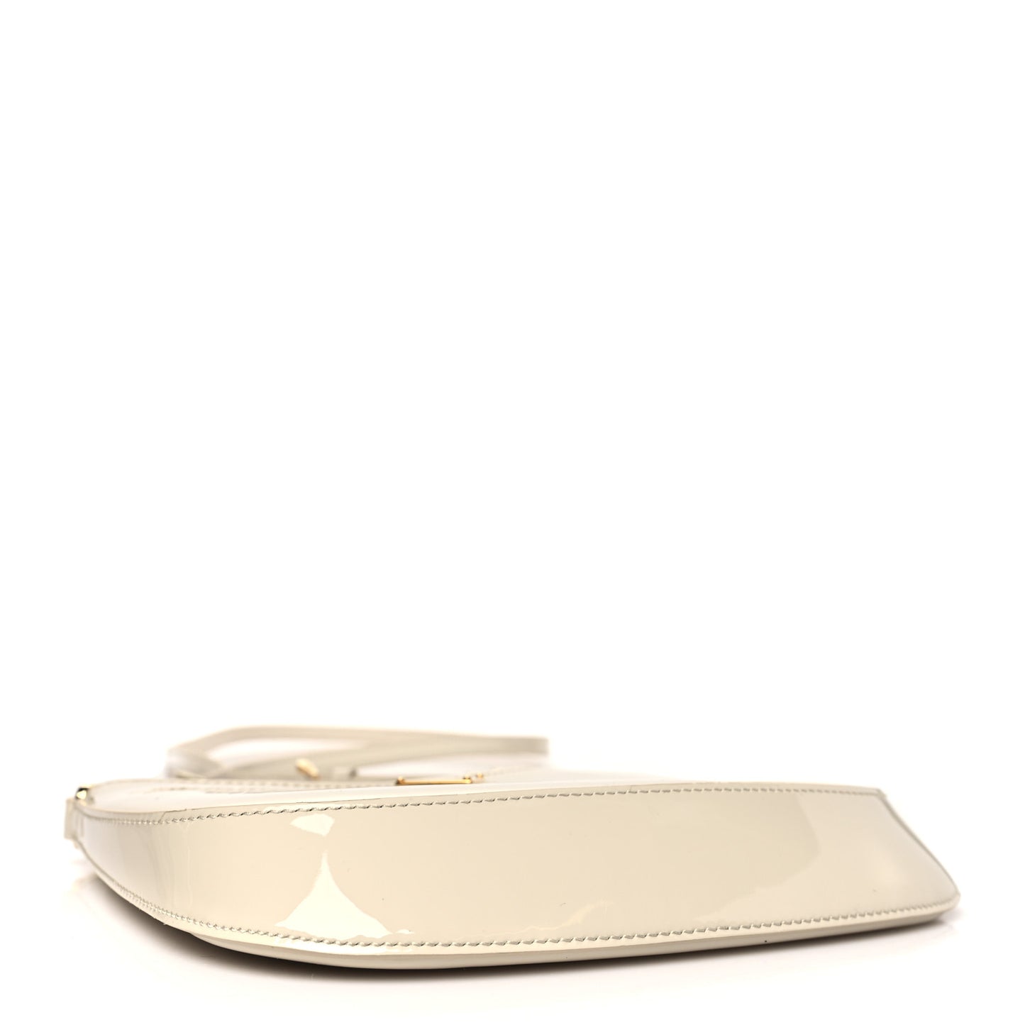 This is an authentic PRADA Spazzolato Cleo Adjustable Strap Shoulder Bag in Avorio. This chic shoulder bag is crafted of ivory smooth patent leather. It features an adjustable shoulder strap with gold hardware. The snap closure opens to a smooth leather interior with a leather patch pocket.Follow this item for alerts. Prada is a registered trademark of Prada. FASHIONPHILE is not affiliated with Prada.