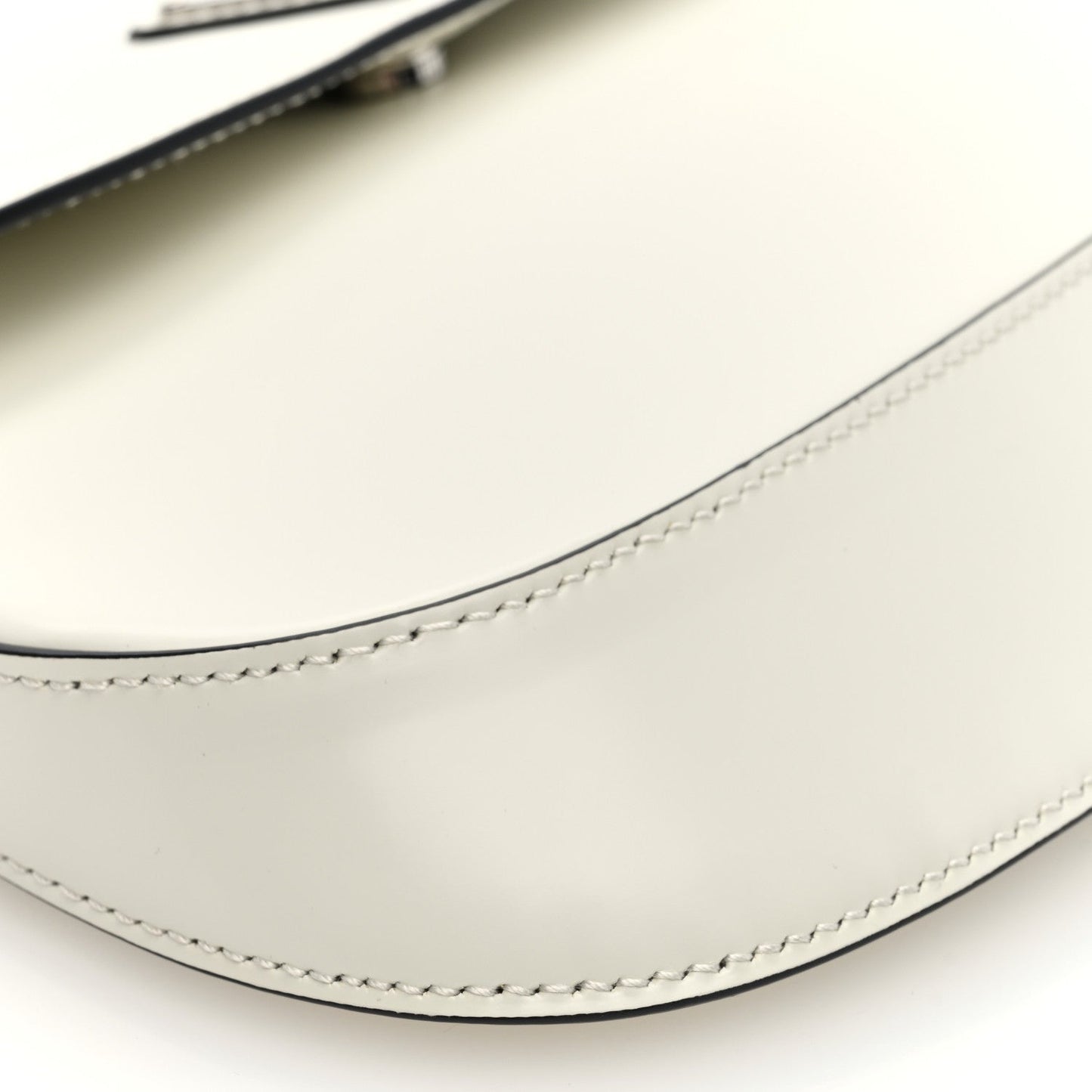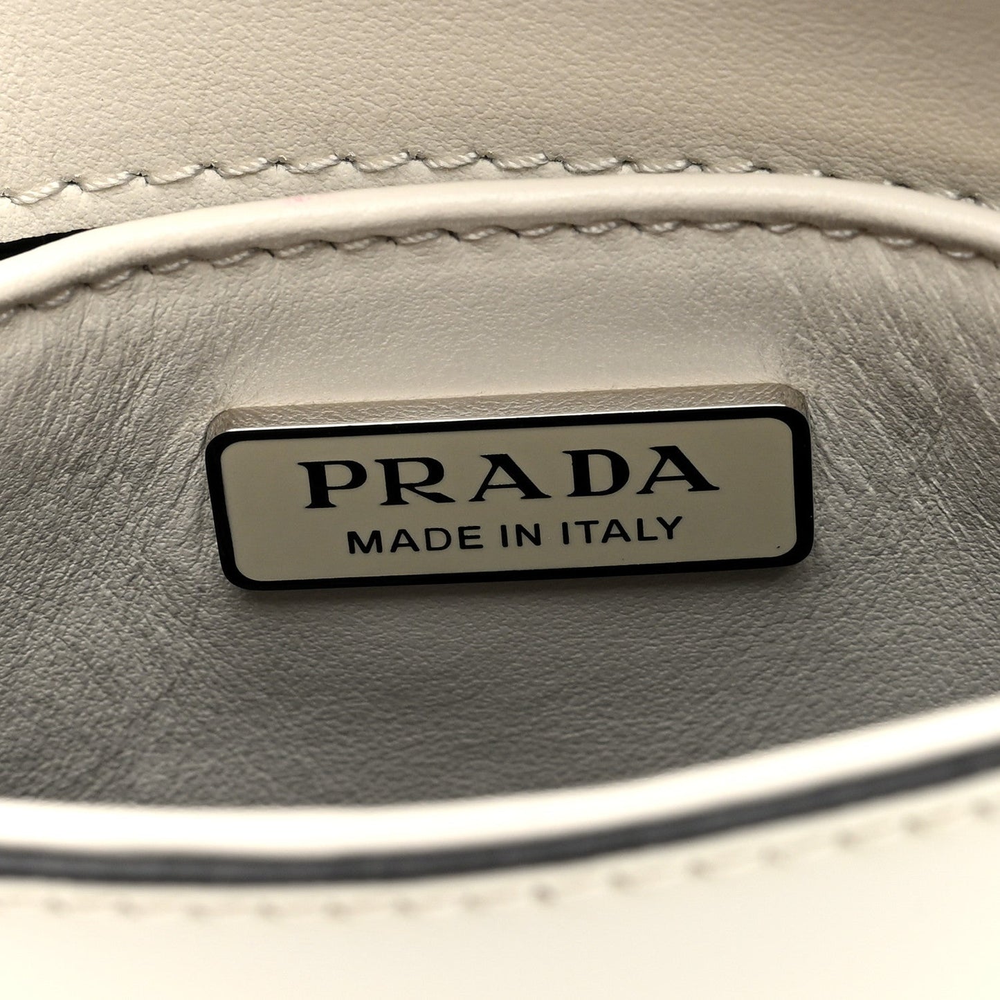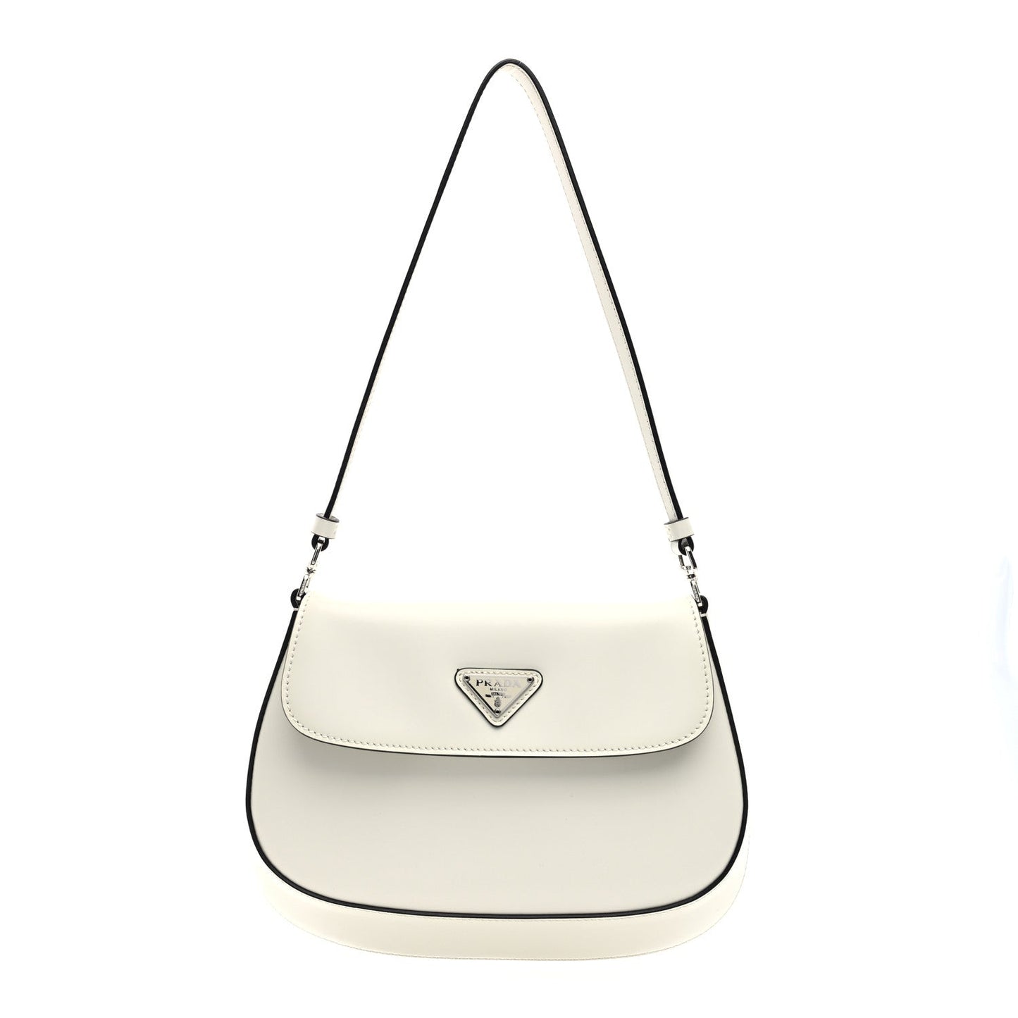 This is an authentic PRADA Spazzolato Cleo Flap Shoulder Bag in White. This bag is crafted of smooth white calfskin leather. The bag features a flap with a Prada logo, a white leather strap and a rear pocket. The flap has a magnetic closure and opens to a black Prada jacquard interior with a patch pocket.Follow this item for alerts. Prada is a registered trademark of Prada. FASHIONPHILE is not affiliated with Prada.