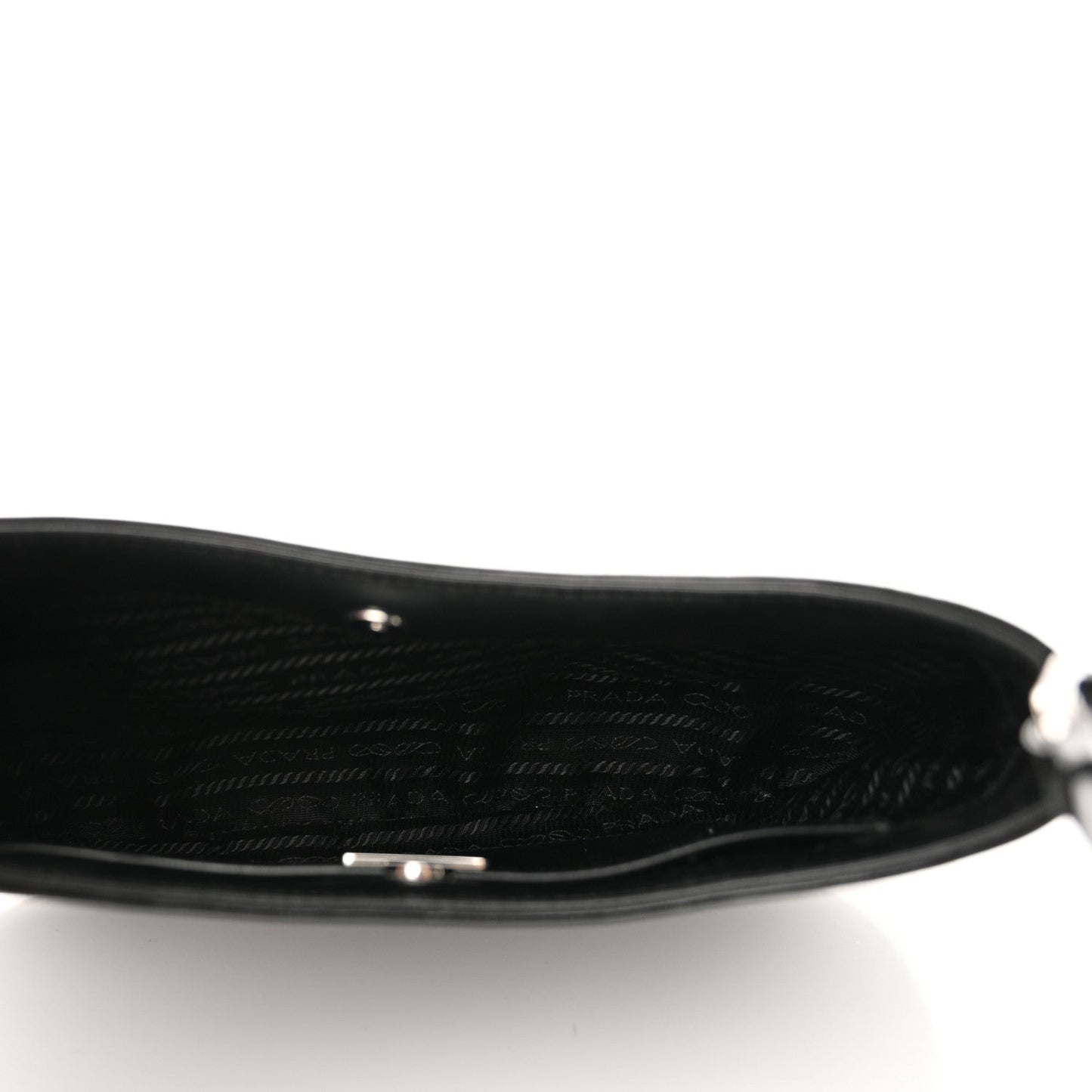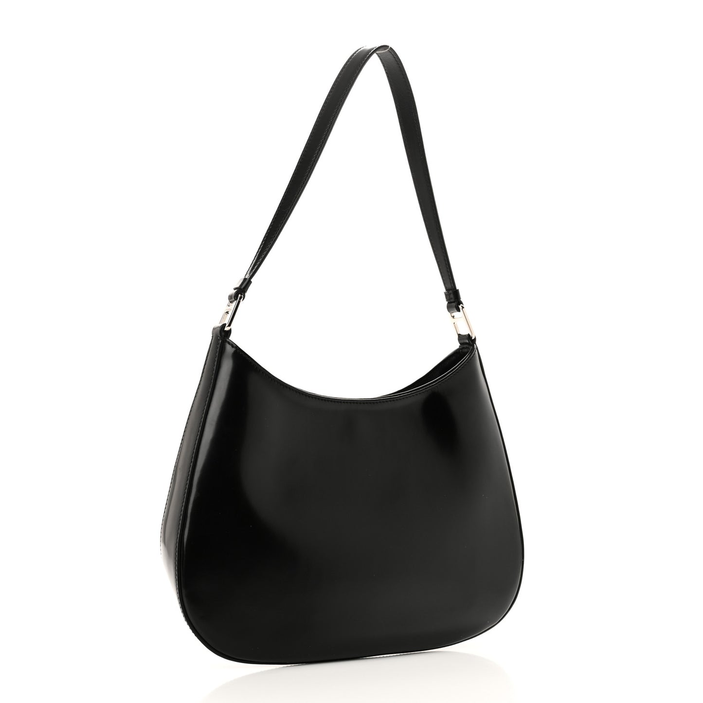 This is an authentic PRADA Spazzolato Cleo Shoulder Bag in Black. This bag is crafted of black calfskin leather. This bag features a matching strap handle and silver hardware. The magnetic closure opens to a black fabric interior with a leather patch pocket.Follow this item for alerts. Prada is a registered trademark of Prada. FASHIONPHILE is not affiliated with Prada.