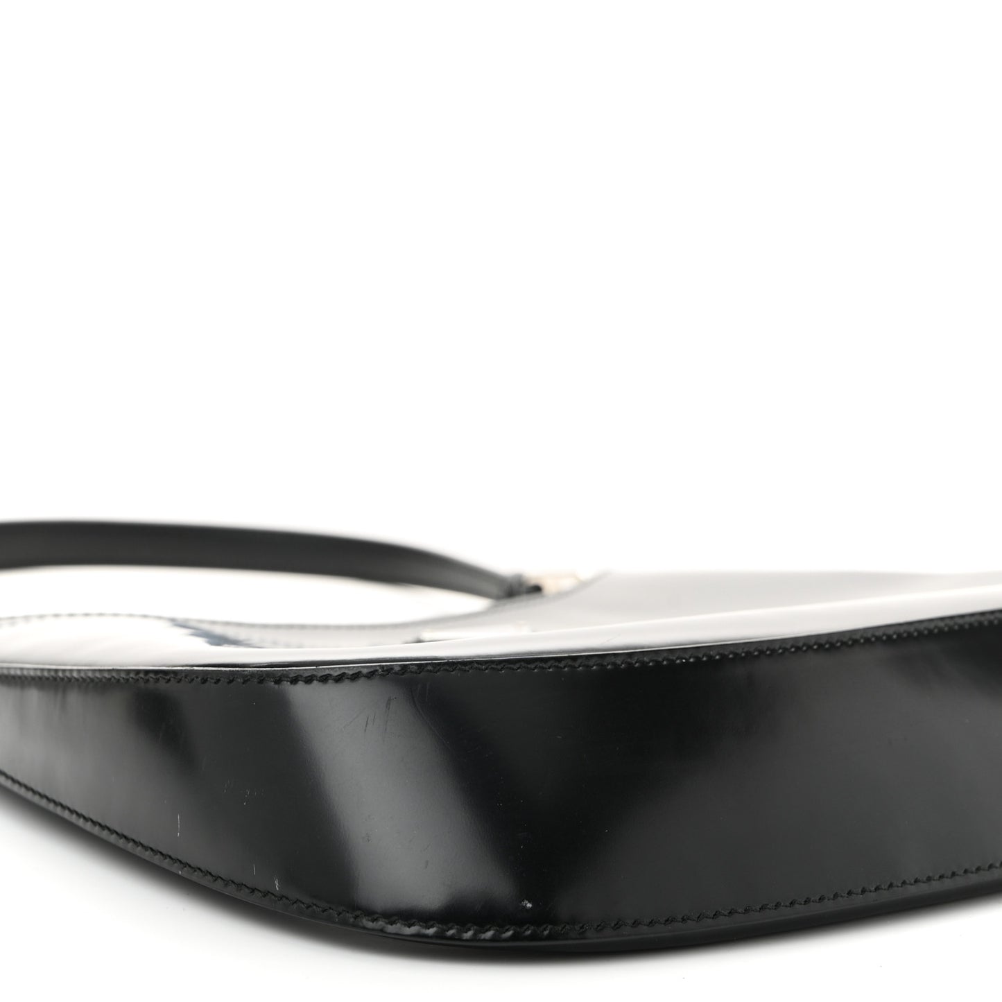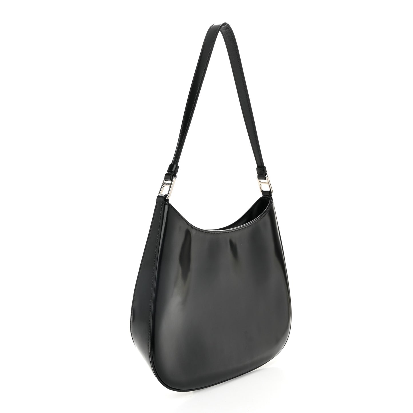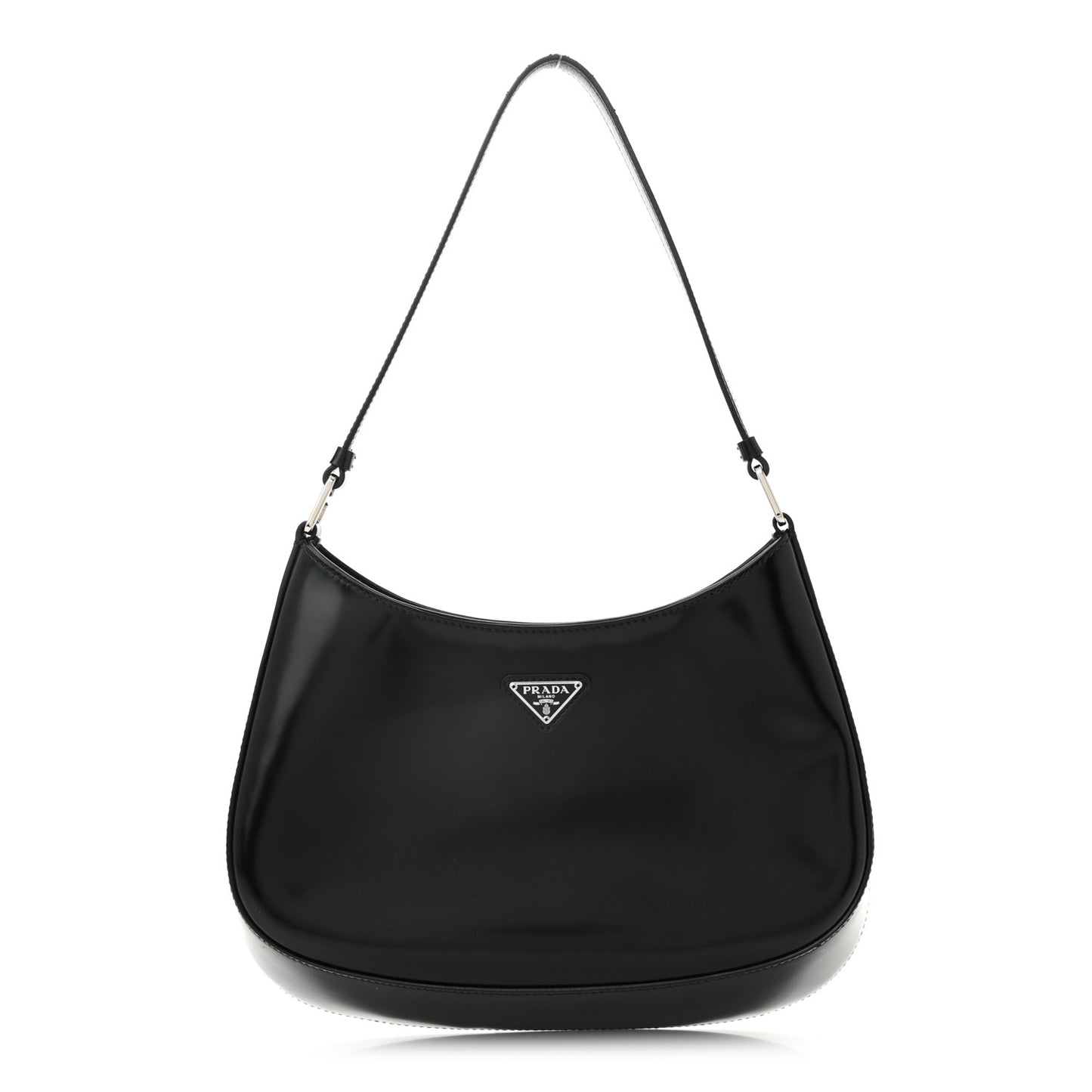 This is an authentic PRADA Spazzolato Cleo Shoulder Bag in Black. This bag is crafted of black shiny calfskin leather. This bag features a matching strap handle and silver hardware. The magnetic closure opens to a black fabric interior with a leather patch pocket.Follow this item for alerts. Prada is a registered trademark of Prada. FASHIONPHILE is not affiliated with Prada.