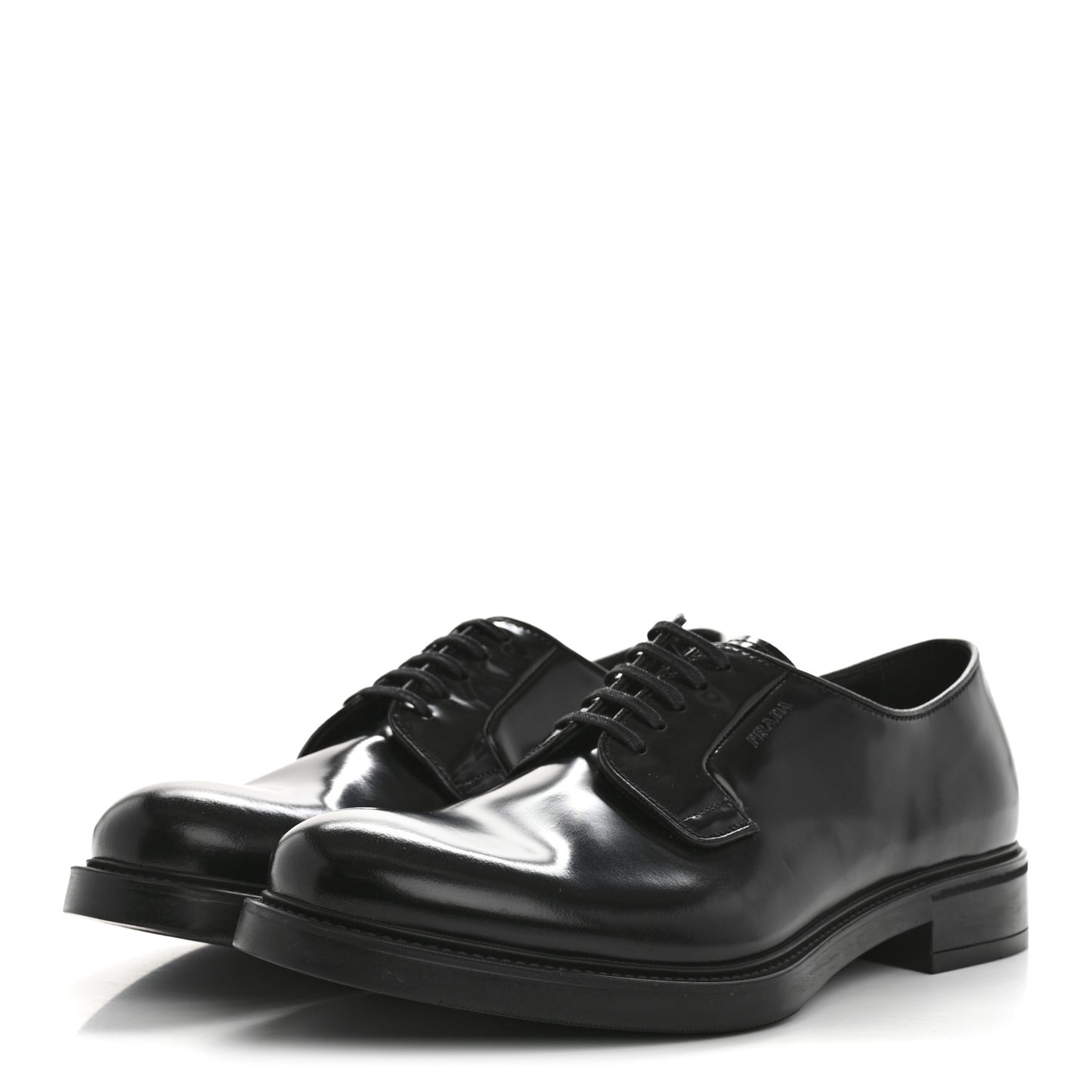 This is an authentic pair of PRADA Spazzolato Lace Up 50mm Loafers size 8 in Black. These loafers are crafted of black leather with black stitching, black laces, and rubber soles.Follow this item for alerts. Prada is a registered trademark of Prada. FASHIONPHILE is not affiliated with Prada.