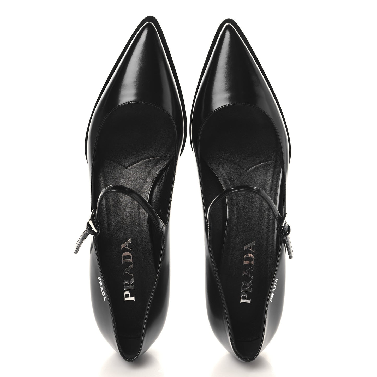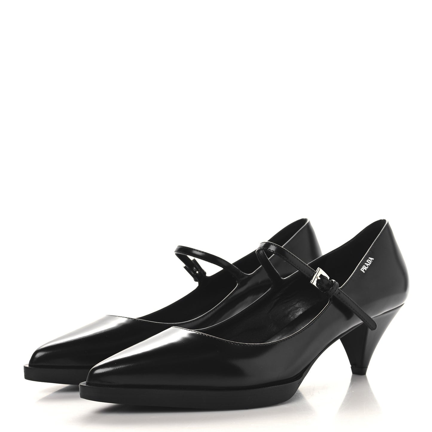 This is an authentic pair of Spazzolato Mary Jane 45mm Pumps size 38.5 in Black. These gorgeous pumps are crafted of black brushed leather and feature a 2.5-inch heel.Follow this item for alerts. Prada is a registered trademark of Prada. FASHIONPHILE is not affiliated with Prada.