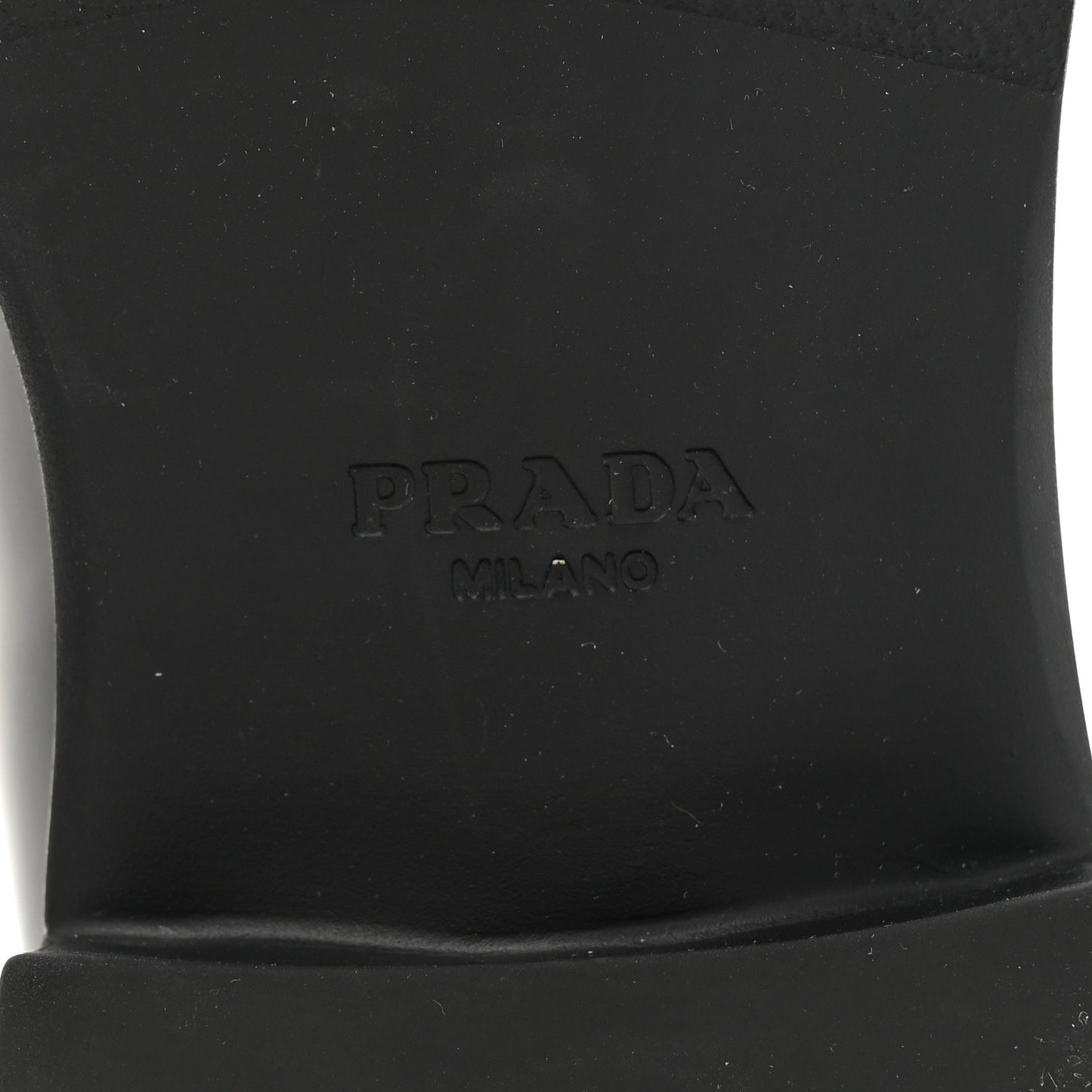 This is an authentic pair of PRADA Spazzolato Metal Triangle Logo 50mm Loafers size 38 in Black. These loafers are crafted of smooth black leather with black stitching, a enamel Prada emblem, and rubber soles.Follow this item for alerts. Prada is a registered trademark of Prada. FASHIONPHILE is not affiliated with Prada.