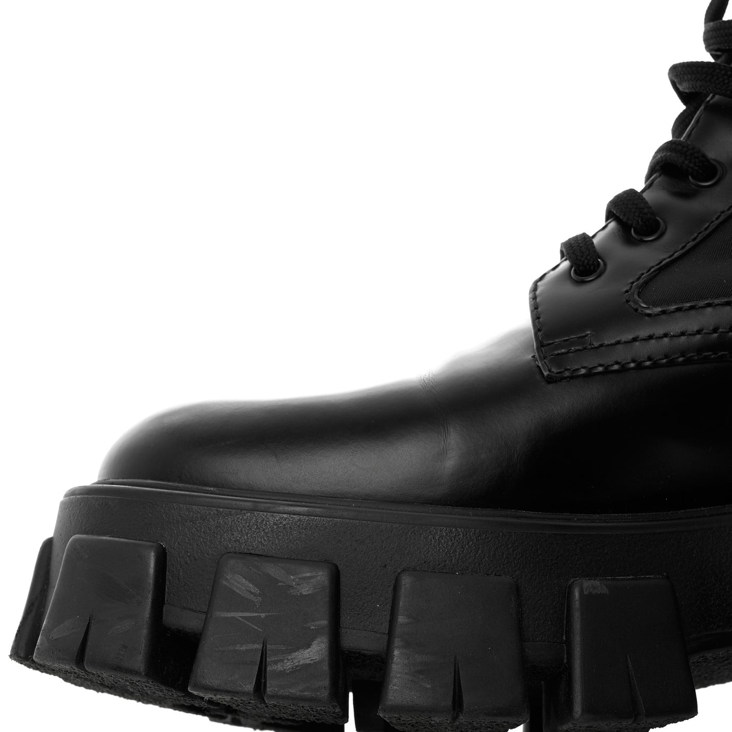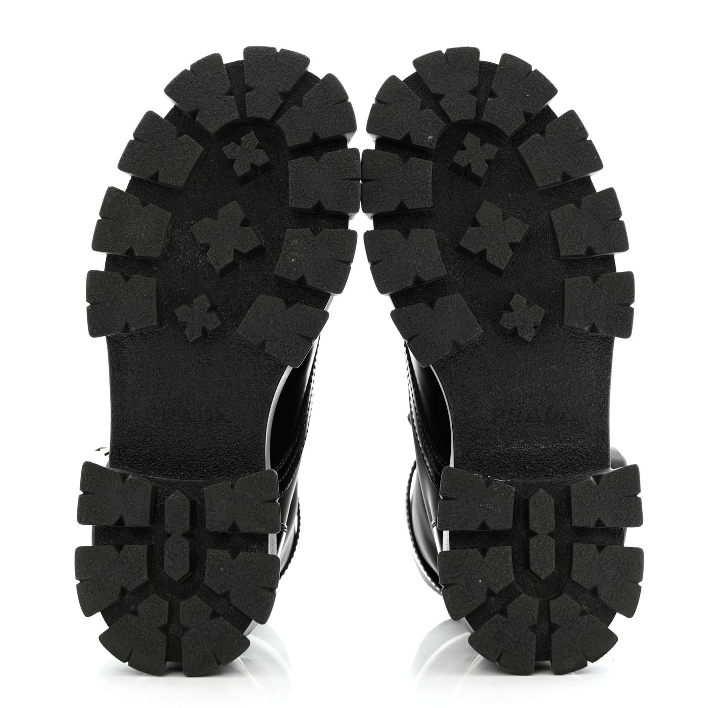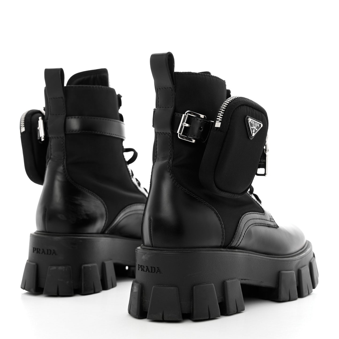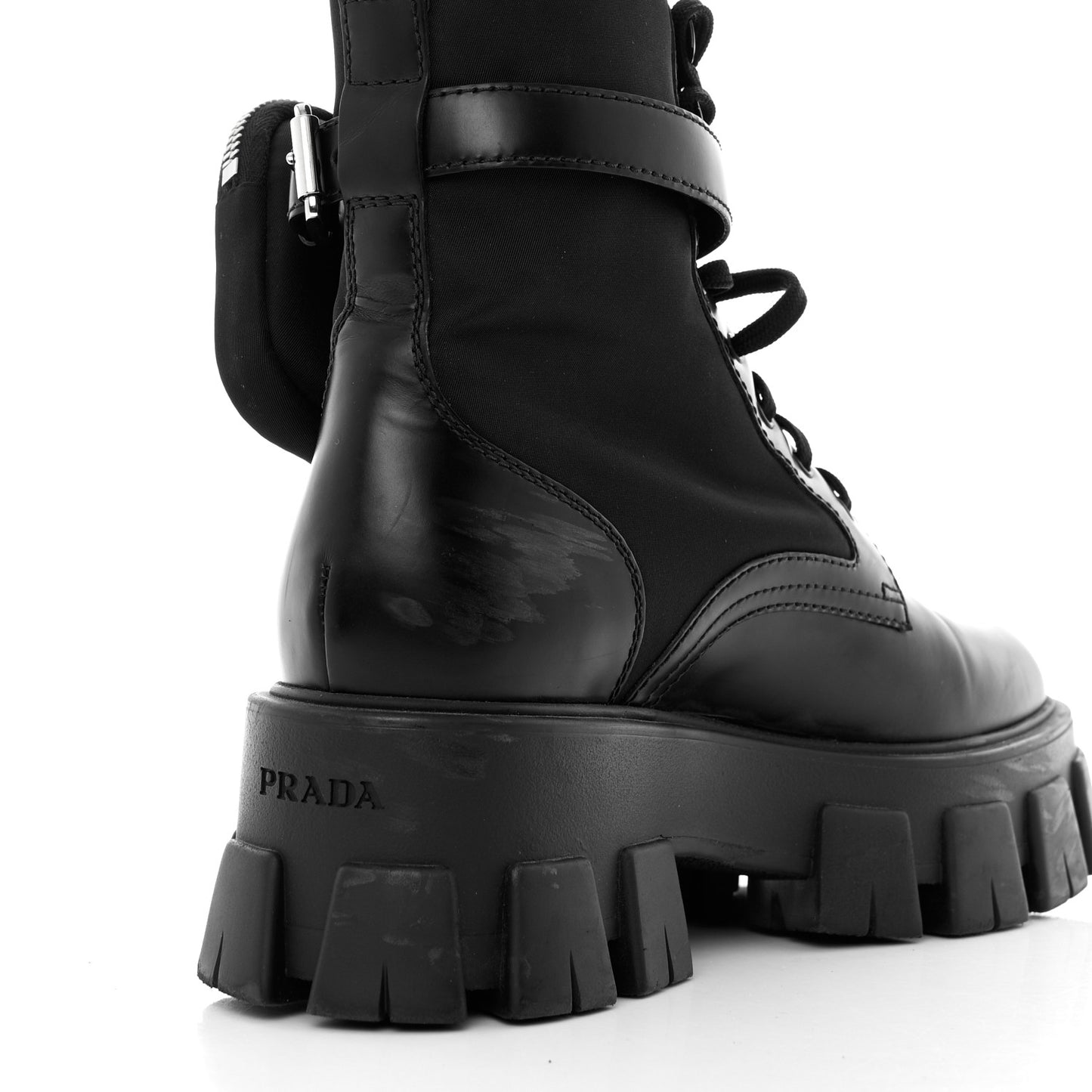 Prada/ Accessories/ Shoes /Prada Spazzolato Rois Nylon Metal Triangle Logo Monolith Pouch Pocket 55mm Boots 39 Black
