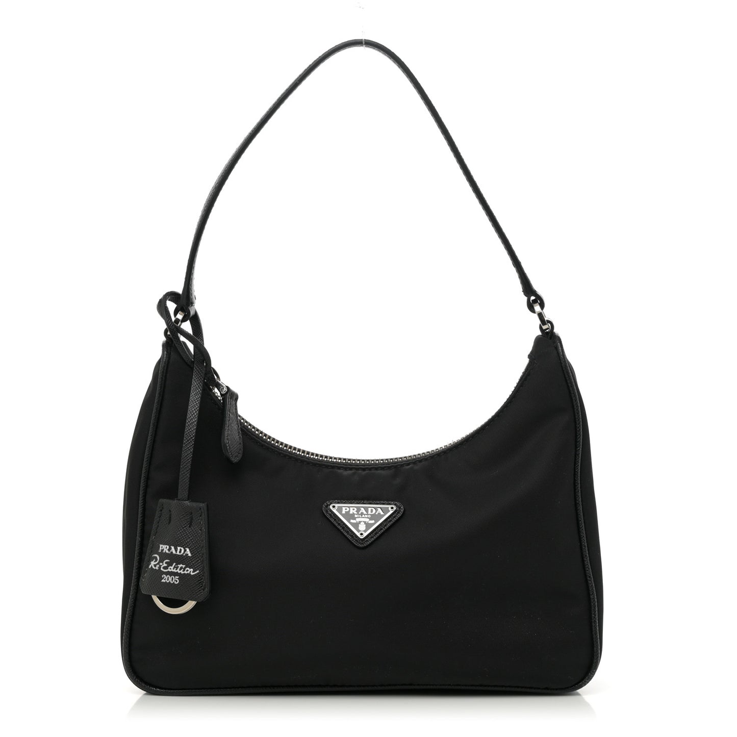 This is an authentic PRADA Tessuto Nylon Mini Re-Edition 2000 Bag in Black. This Prada handbag is crafted of sturdy black tessuto nylon with silver hardware. The bag features a leather shoulder strap and the top zipper opens to a black jacquard fabric interior.Follow this item for alerts. Prada is a registered trademark of Prada. FASHIONPHILE is not affiliated with Prada.