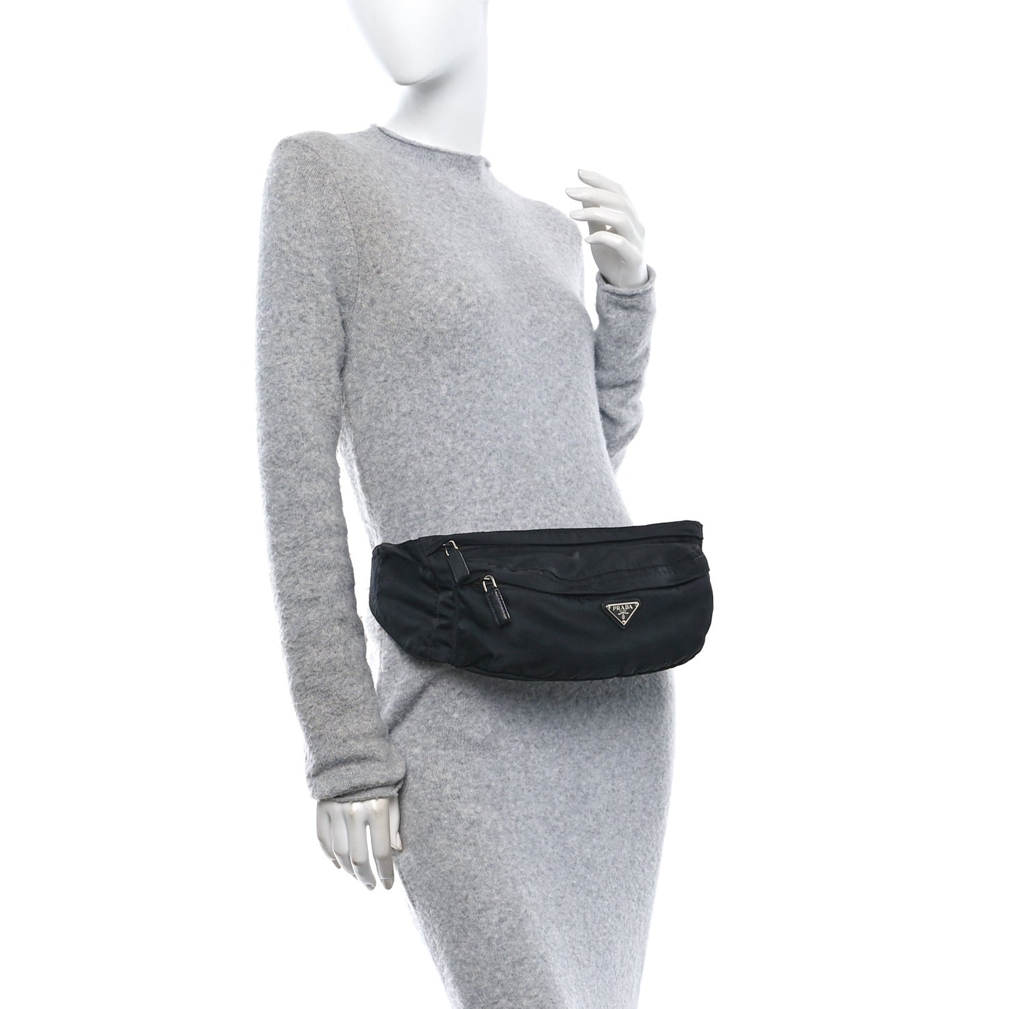 This is an authentic PRADA Tessuto Nylon Montagna Belt Bag in Black. This belt bag is crafted of black nylon with a black Prada enamel logo on the front. It features an adjustable black nylon belt strap, front zippered pocket, and main zipper that opens to a black nylon interior.Follow this item for alerts. Prada is a registered trademark of Prada. FASHIONPHILE is not affiliated with Prada.