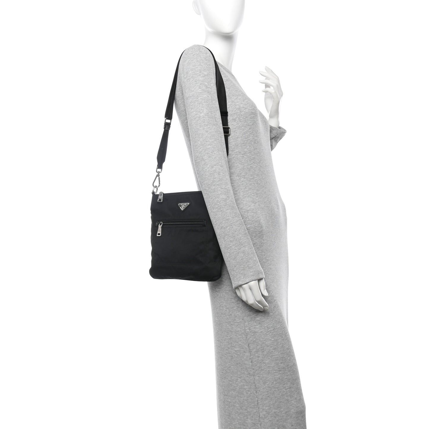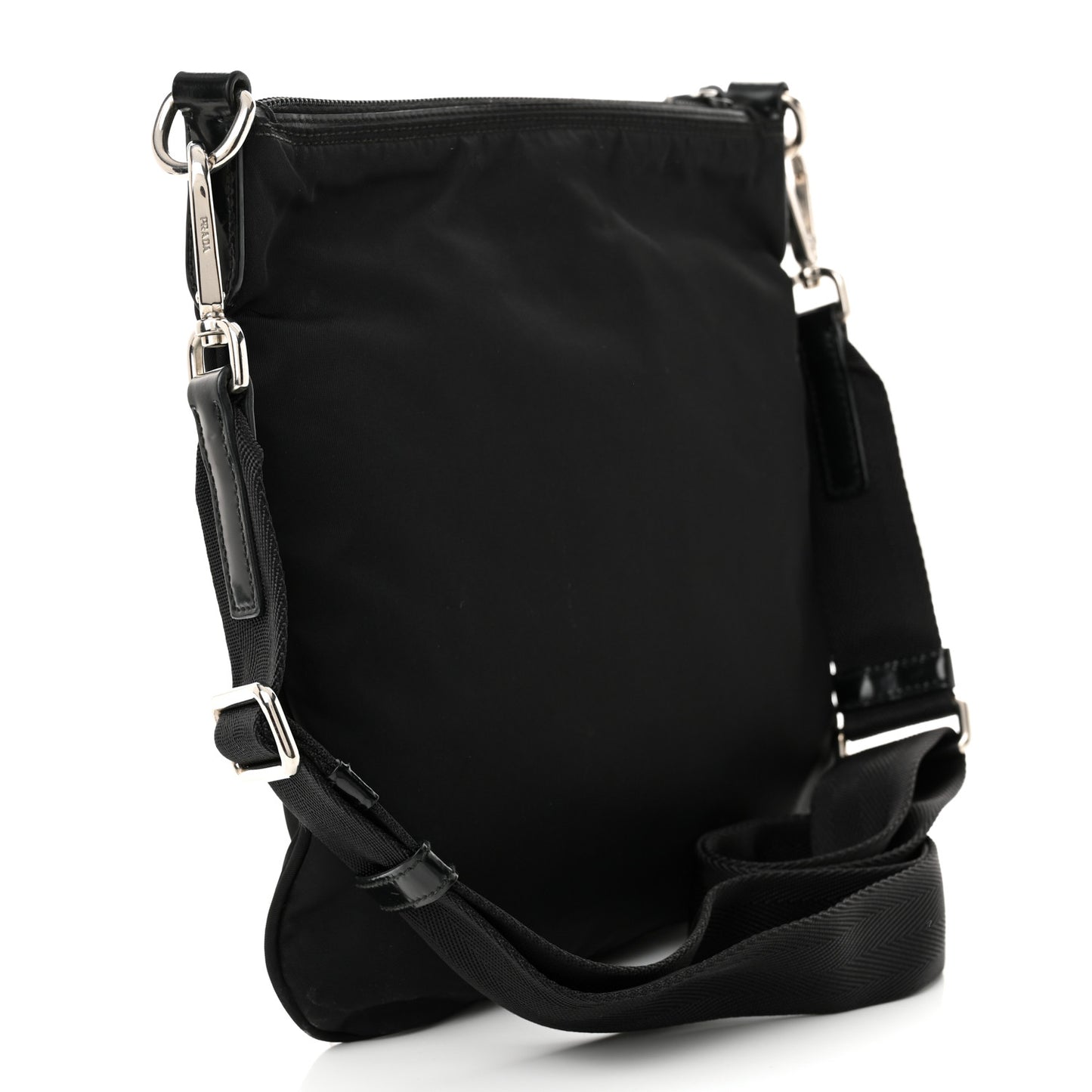 This is an authentic PRADA Tessuto Nylon Saffiano Flat Messenger Bag in Black. This Prada handbag is crafted of sturdy black tessuto nylon. The shoulder bag features an adjustable crossbody strap, a front zipper pocket, and silver hardware. The top zipper opens to a black nylon interior with a zipper pocket.Follow this item for alerts. Prada is a registered trademark of Prada. FASHIONPHILE is not affiliated with Prada.