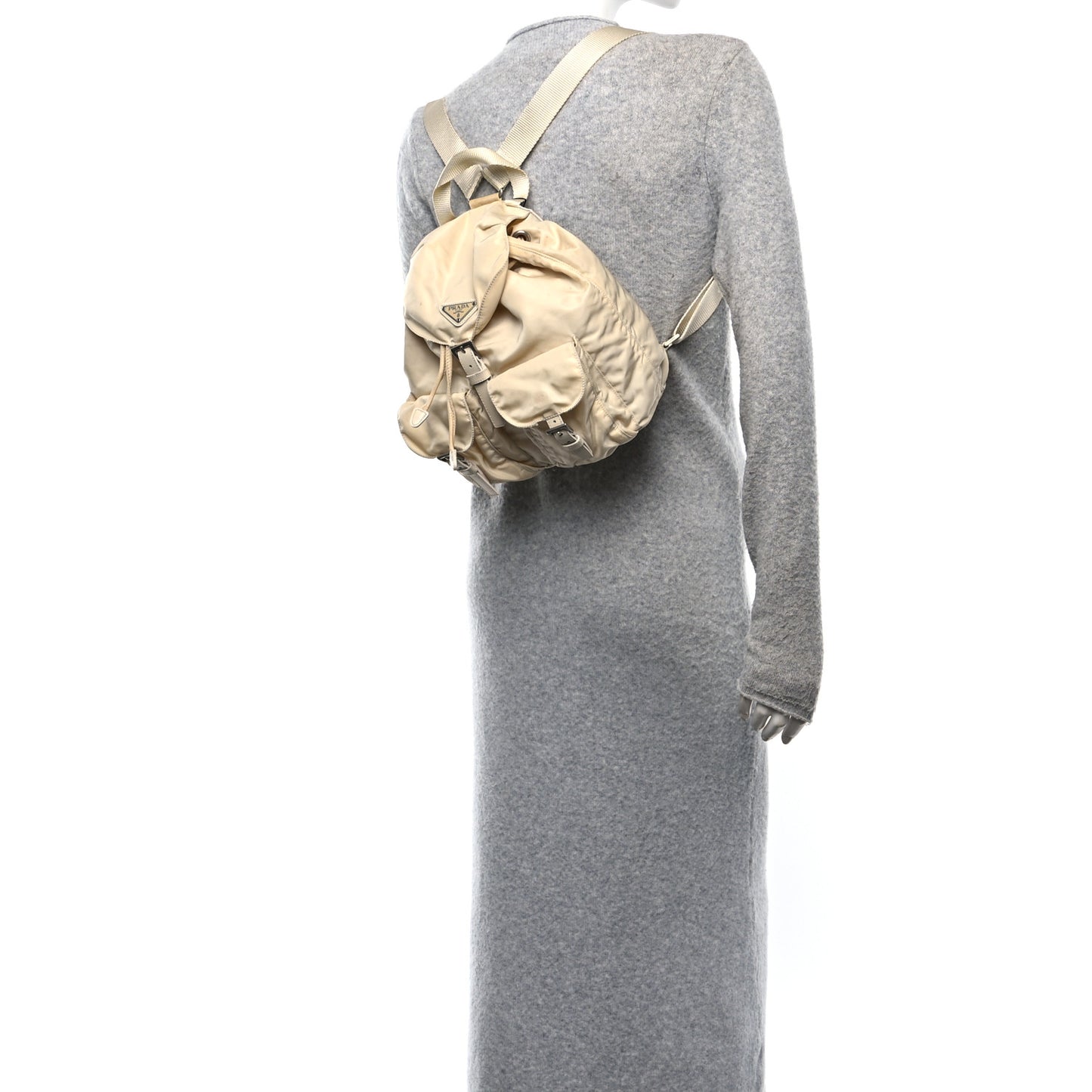 This is an authentic PRADA Tessuto Nylon Vela Small Backpack in Sabbia. This chic backpack is crafted of fine durable nylon and features a top flap and two front exterior pockets with silver buckles and adjustable shoulder straps. The top opens to a spacious Prada logo fabric interior with a zipper pocket.Follow this item for alerts. Prada is a registered trademark of Prada. FASHIONPHILE is not affiliated with Prada.