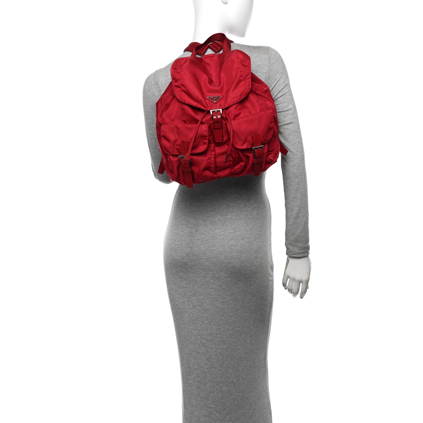 This is an authentic PRADA Tessuto Nylon Vela Medium Backpack in Cerise. This stylish backpack is crafted of red nylon with red leather trim. The bag features front bucket pockets with buckle closure, a fabric top handle, and adjustable nylon shoulder straps. The magnetic crossover flap unbuckles to a top drawstring that opens to a dark brown jacquard Prada logo fabric interior with a zippered pocket.Follow this item for alerts. Prada is a registered trademark of Prada. FASHIONPHILE is not affiliated with Prada.