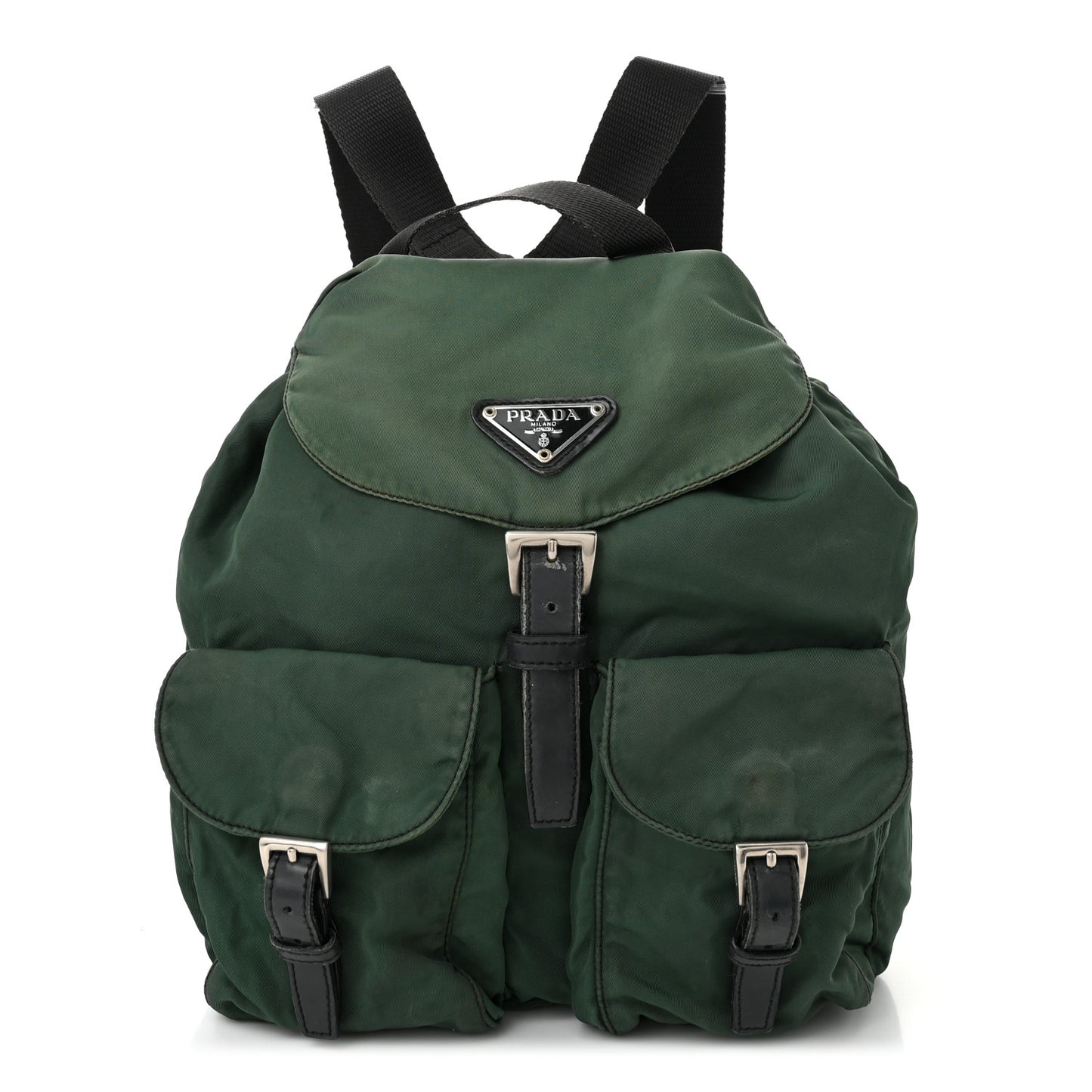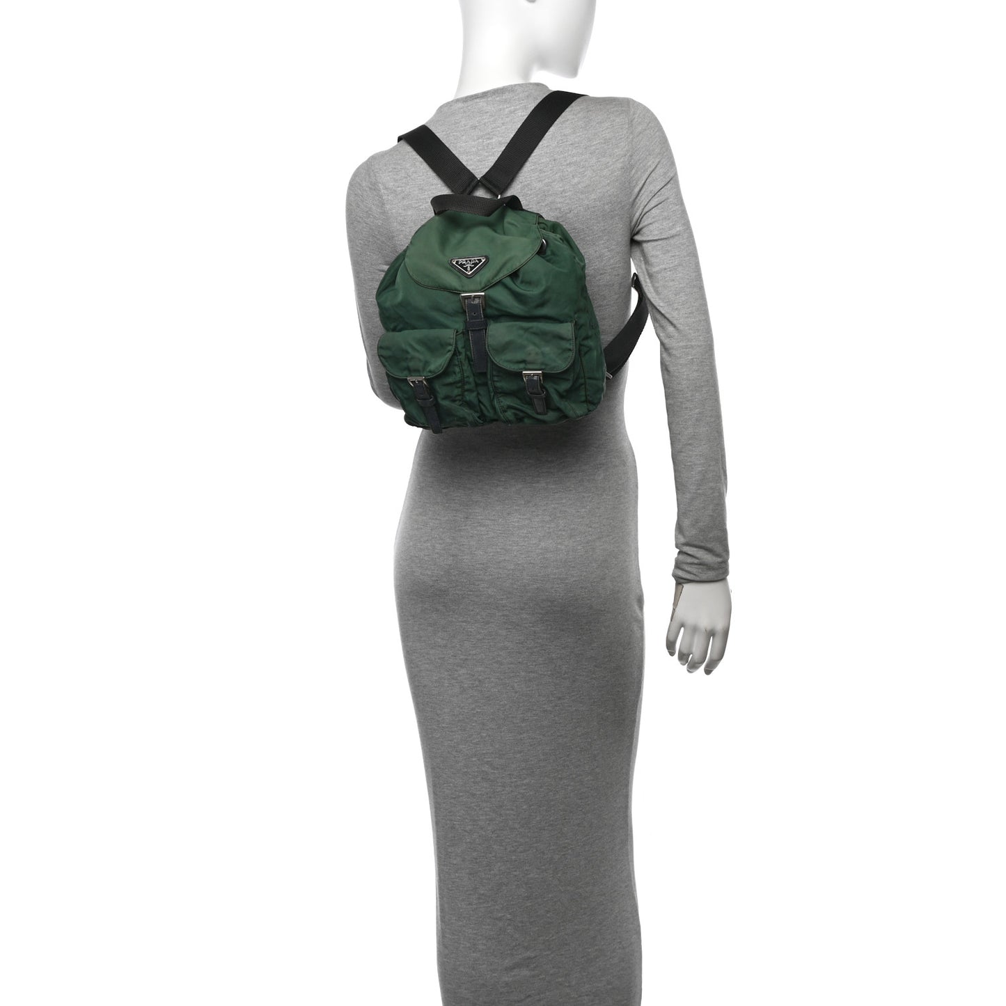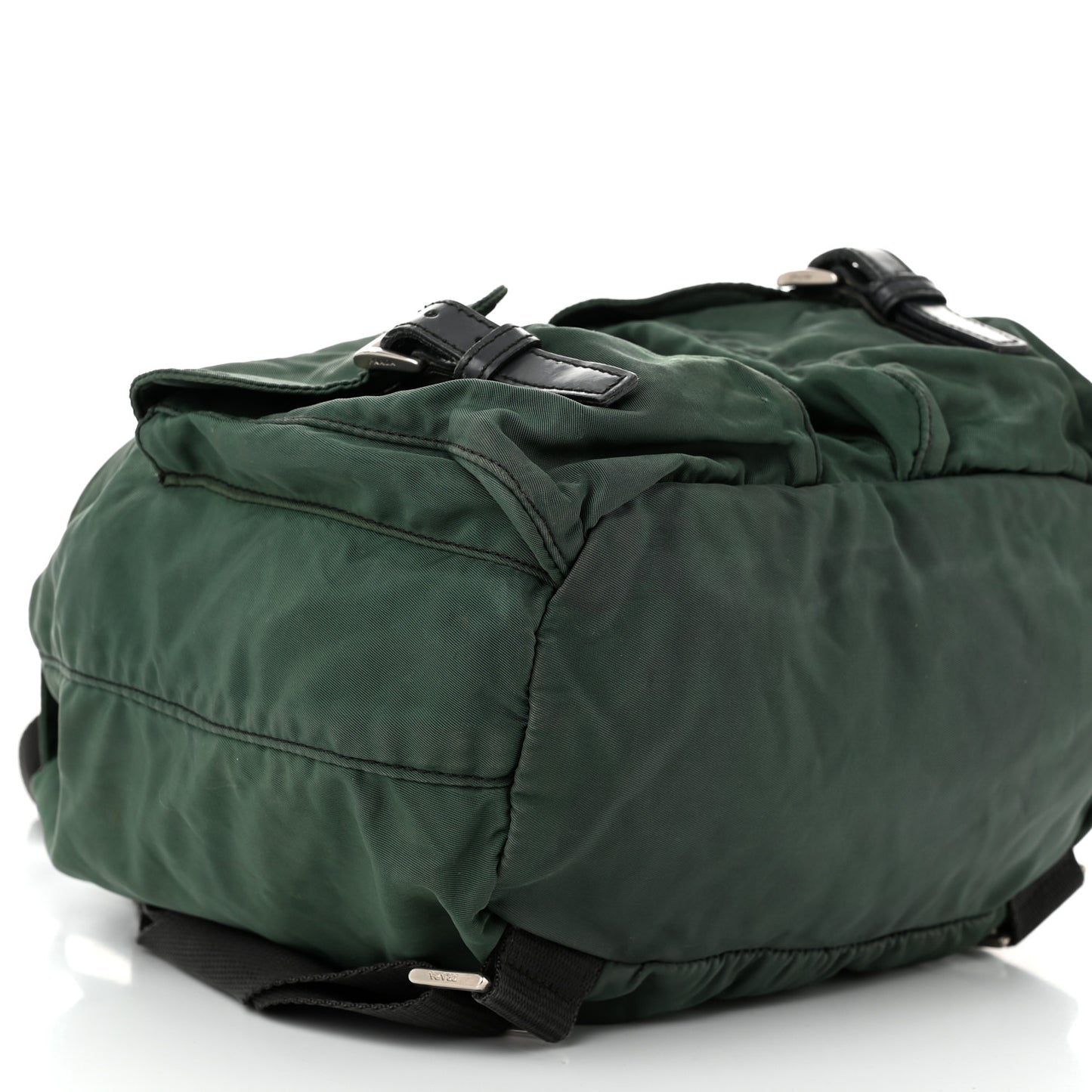 This is an authentic PRADA Tessuto Nylon Vela Small Backpack in Fumo. This chic backpack is crafted of fine durable nylon in dark green and features a top flap and two front exterior pockets with silver buckles and adjustable shoulder straps. The top opens to a spacious Prada logo fabric interior with a zipper pocket.Follow this item for alerts. Prada is a registered trademark of Prada. FASHIONPHILE is not affiliated with Prada.