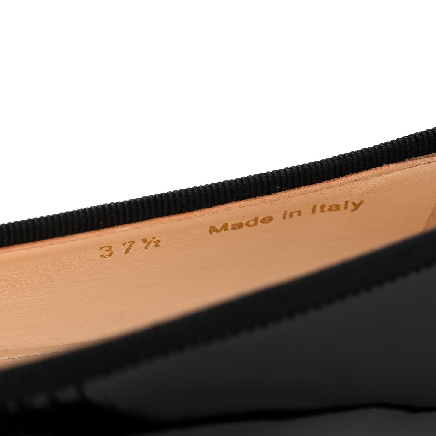 These are an authentic pair of PRADA Vernice Cap Toe Logo Bow Ballerina Flats size 37.5 in Black. These flats are crafted of black patent leather with matching bows and 0.75-inch patent heels.Follow this item for alerts. Prada is a registered trademark of Prada. FASHIONPHILE is not affiliated with Prada.