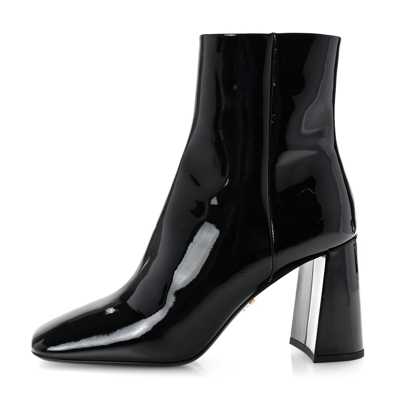 This is an authentic pair of PRADA Vernice Square Ankle Boots size 35 in Black. These ankle boots are crafted of black patent leather with squared toes, side zippers, and 3.25-inch block heels.Follow this item for alerts. Prada is a registered trademark of Prada. FASHIONPHILE is not affiliated with Prada.