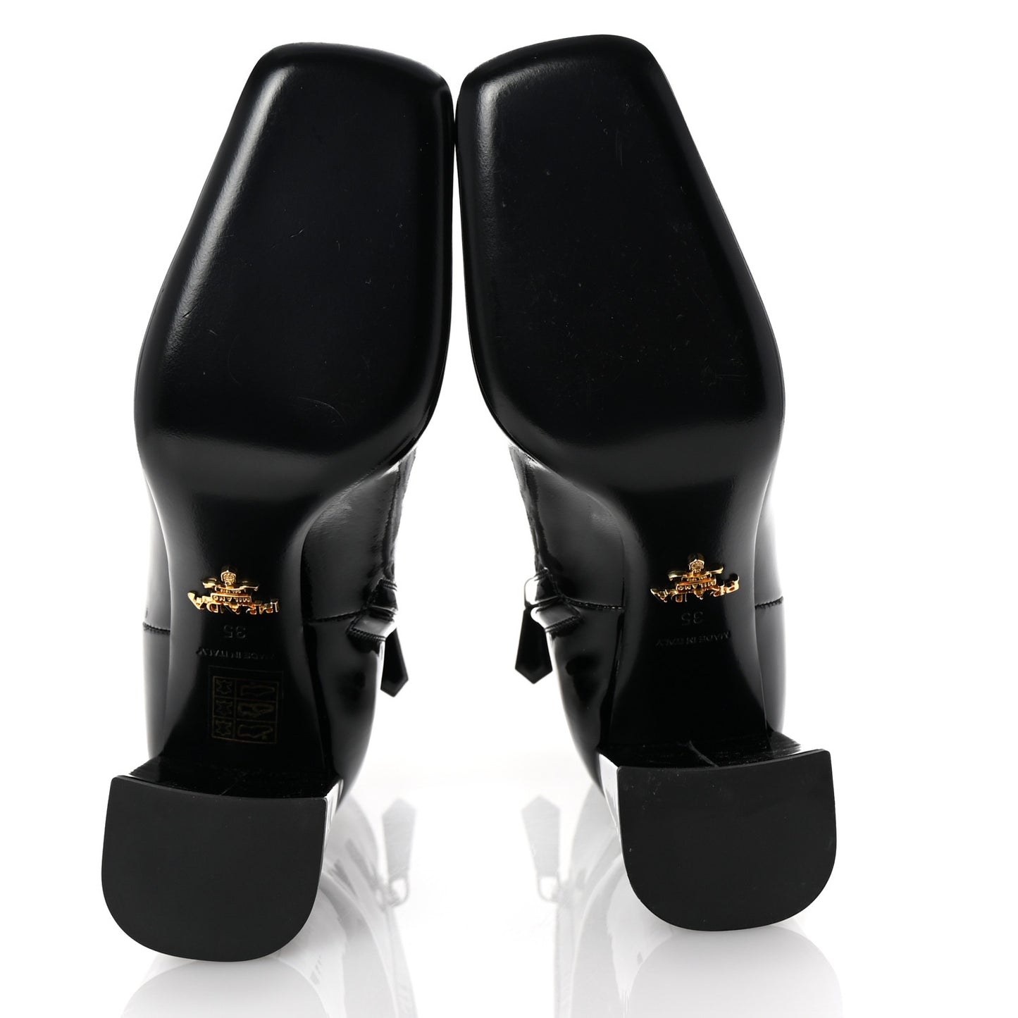 Prada/ Accessories/ Shoes /Prada Vernice Square Ankle Boots 35 Black