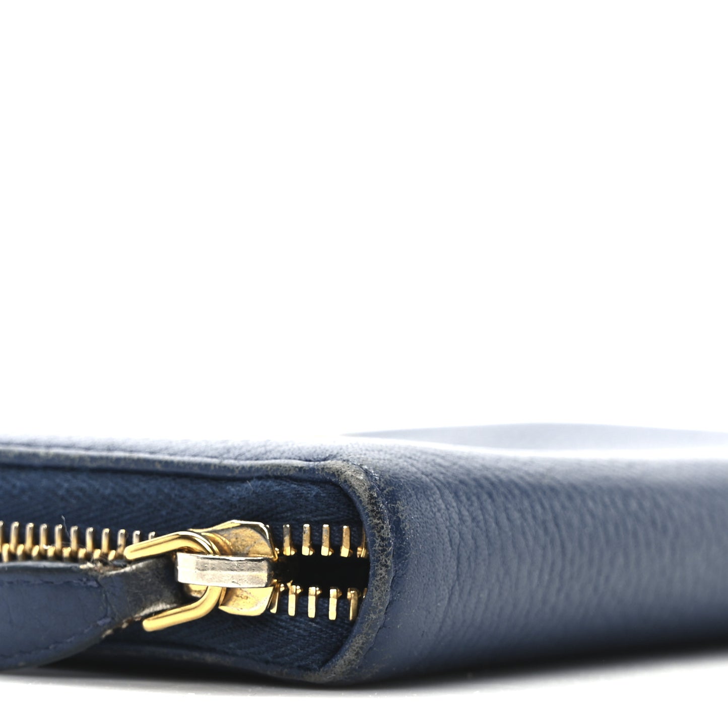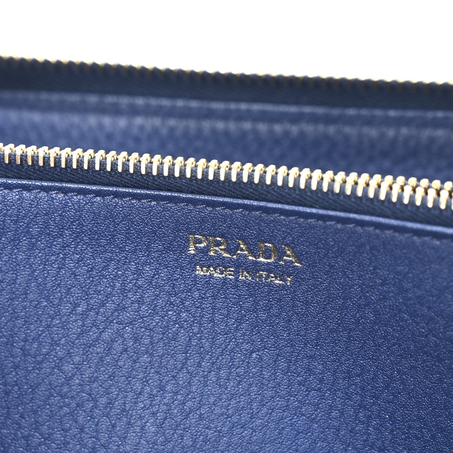 Prada/ Accessories/ Wallets /Prada Vitello Daino Metal Zip Around Wallet Blue