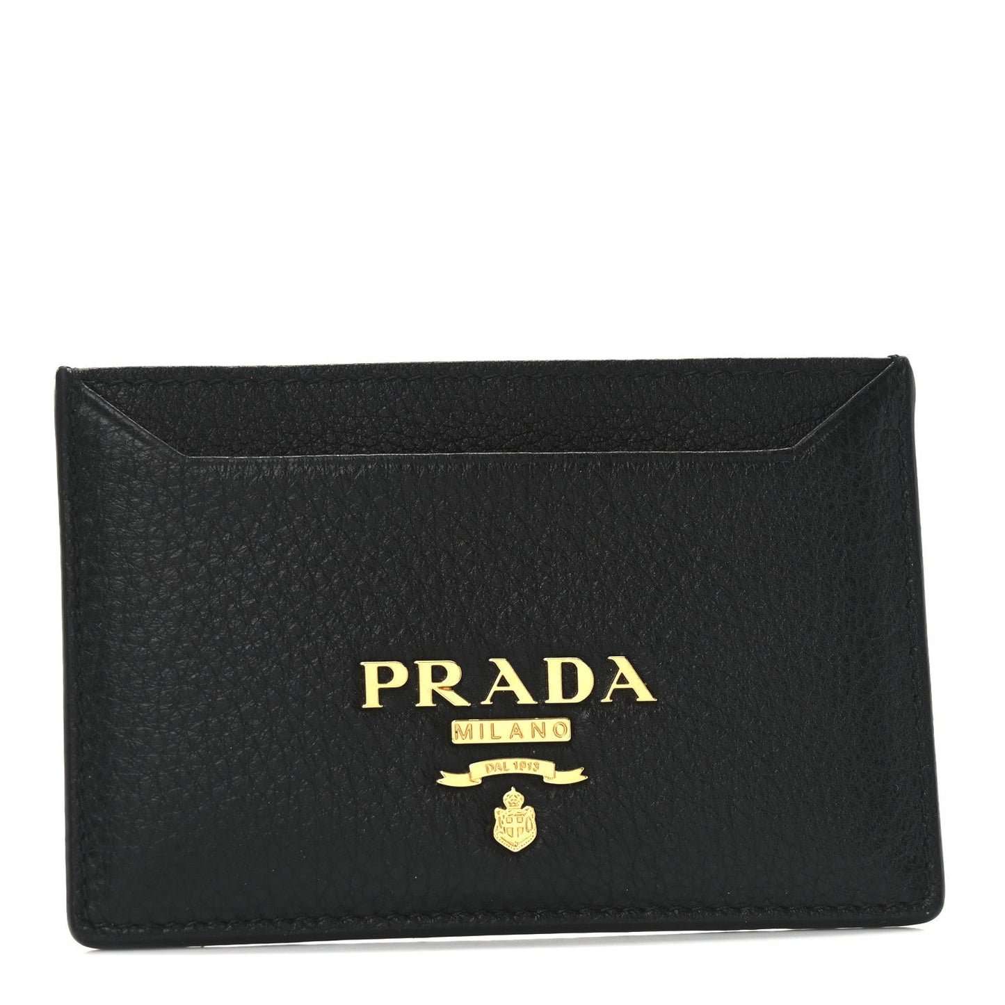 Prada/ Accessories/ Wallets /Prada Vitello Grain Metal Card Holder Black