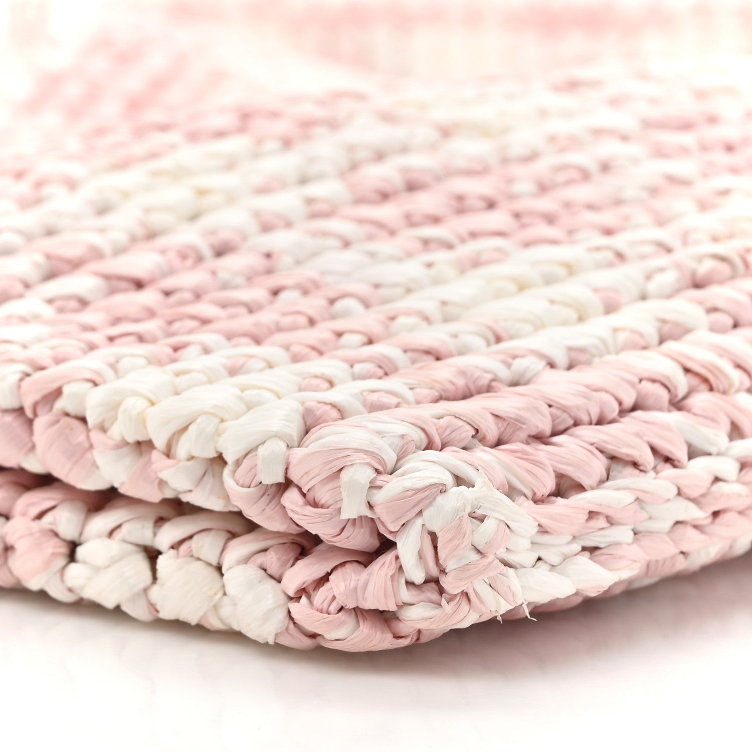 Yarn Raffia Effect Crochet Embroidered Logo Tote Messenger Bag Pink