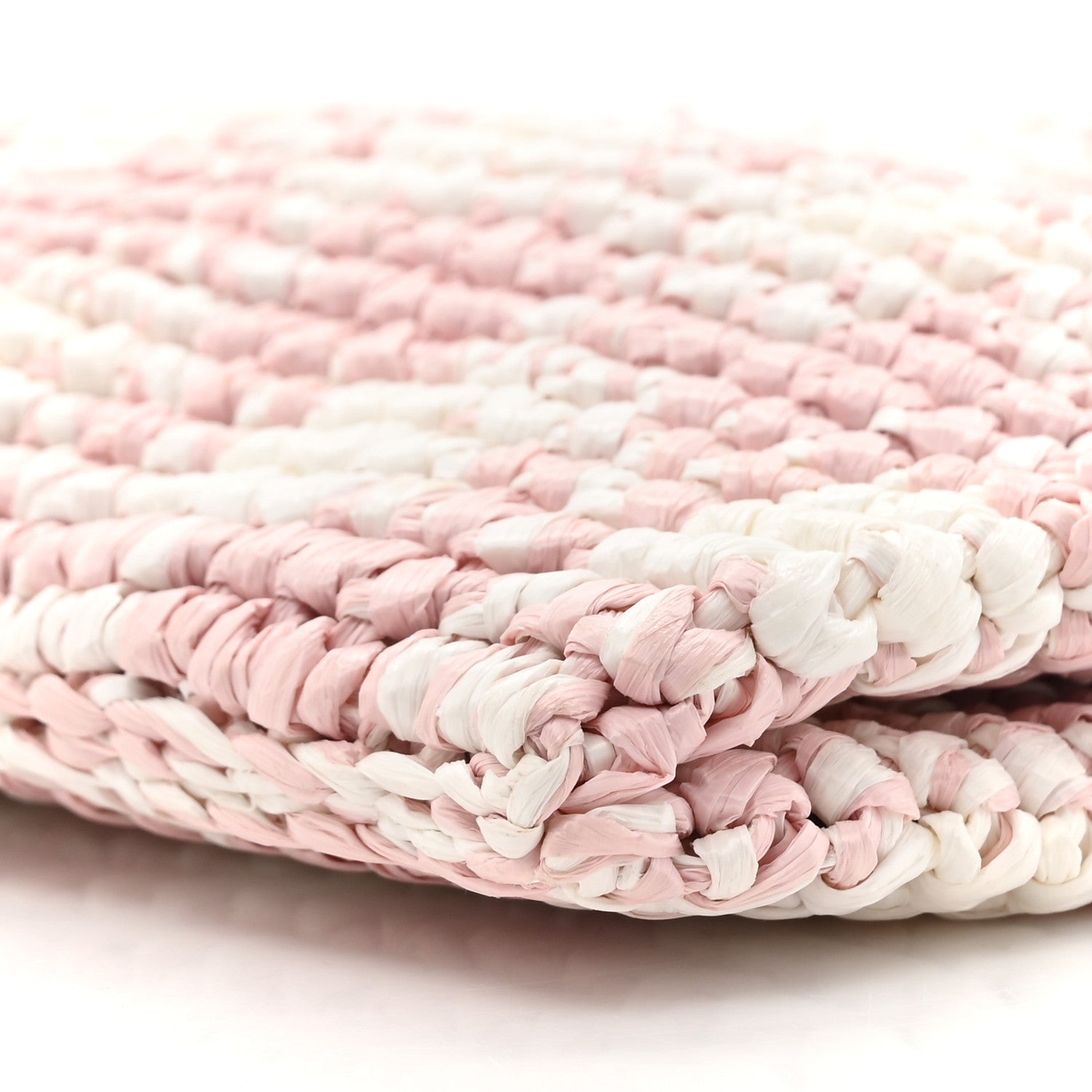 This is an authentic PRADA Yarn Raffia Effect Crochet Embroidered Logo Tote Messenger Bag in Pink. This stylish tote is crafted of raffia-effect yarn in white and pink. The bag features an embroidered black Prada on the front, a matching tall shoulder strap, an enameled Prada emblem, and an unlined interior.Follow this item for alerts. Prada is a registered trademark of Prada. FASHIONPHILE is not affiliated with Prada.