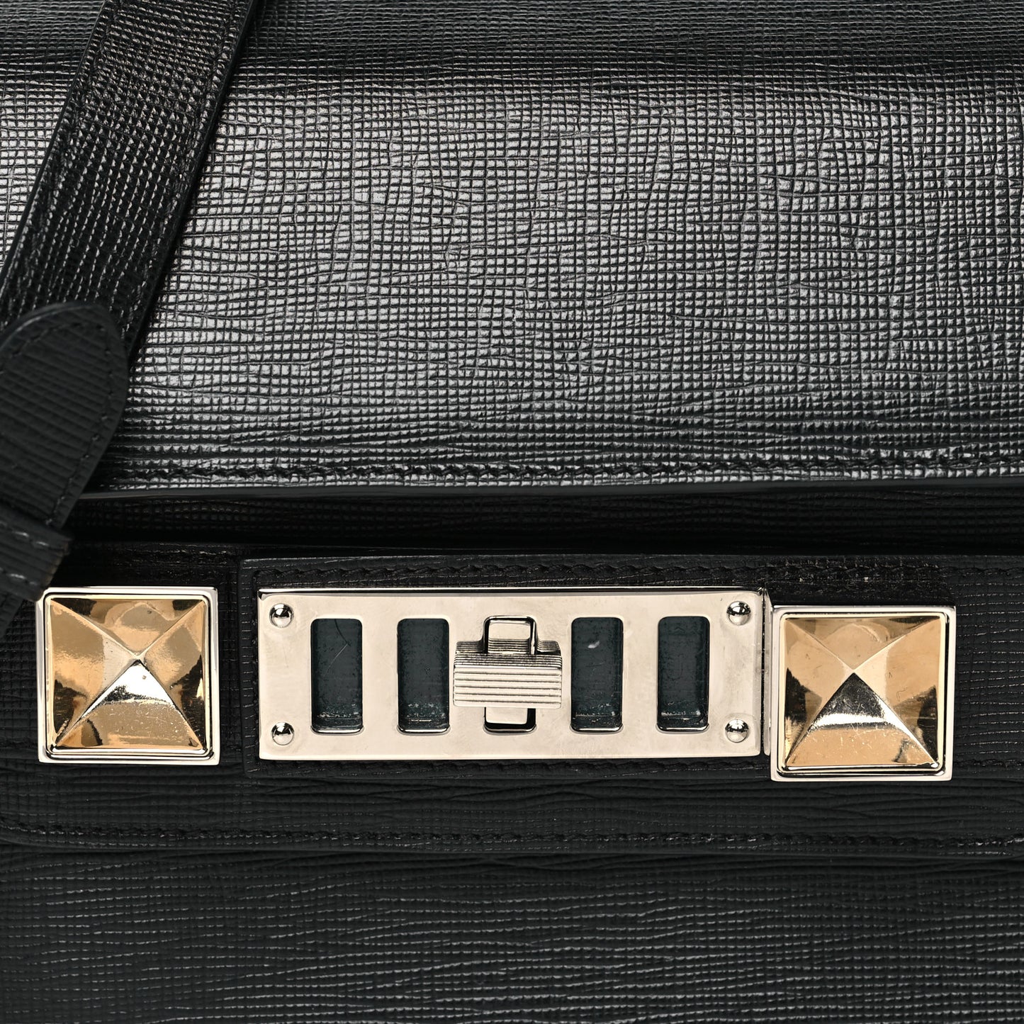 This is an authentic PROENZA SCHOULER New Linosa Mini PS11 Classic Shoulder Bag in Black. This stunning shoulder bag is beautifully crafted of textured cross grain leather in black. It features a sturdy adjustable cross body shoulder strap with silver links and a front flap secured with signature inverted stud hardware. The flap opens to a black fabric interior with a zippered pocket.Follow this item for alerts. Proenza Schouler is a registered trademark of Proenza Schouler. FASHIONPHILE is not affiliated with Proenza Schouler.