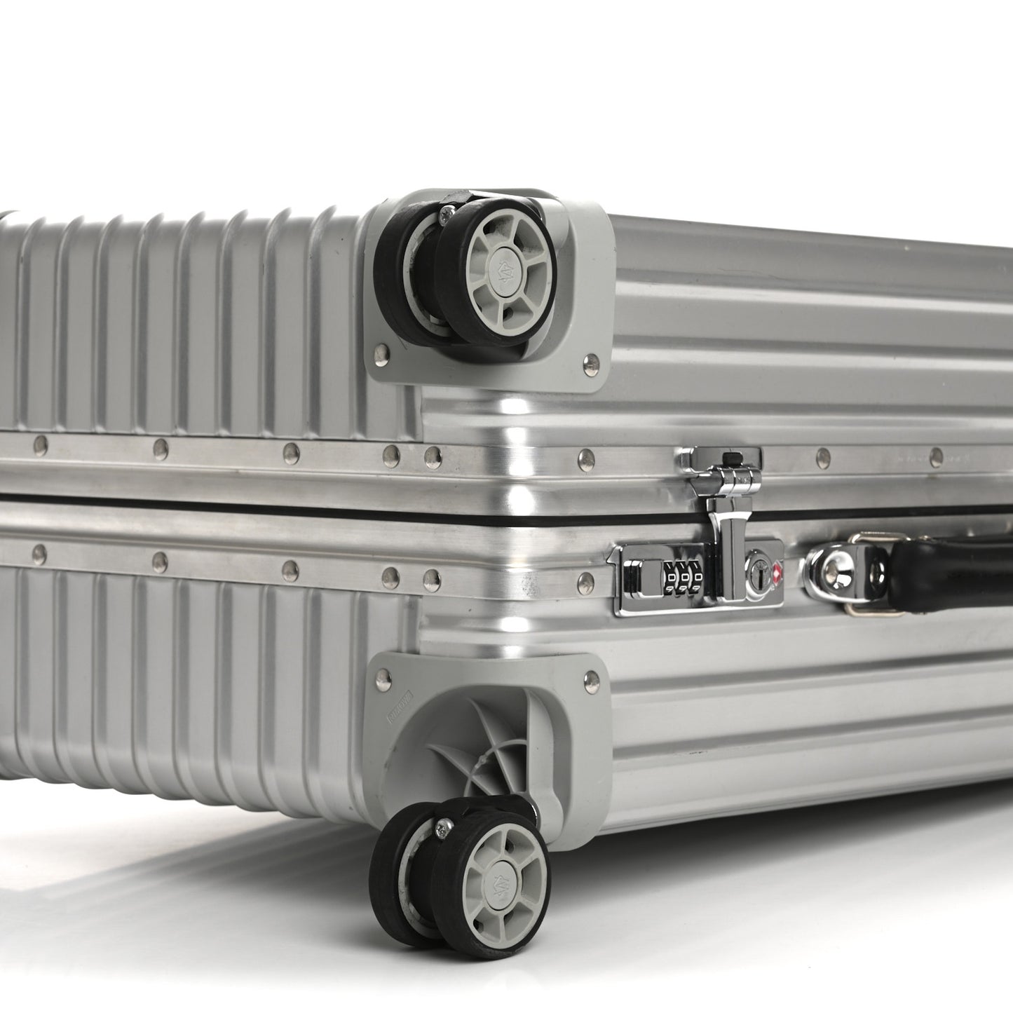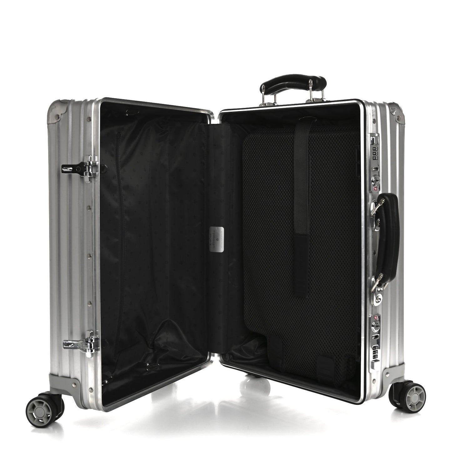 This is an authentic RIMOWA Aluminum Classic Flight Cabin in Silver. This chic Rimowa luggage is crafted from lightweight aluminum in silver. It features two carrying handles, a telescopic handle, and opens with two combo locks to a monogrammed fabric interior with two removable inserts.Follow this item for alerts. Rimowa is a registered trademark of Rimowa. FASHIONPHILE is not affiliated with Rimowa.