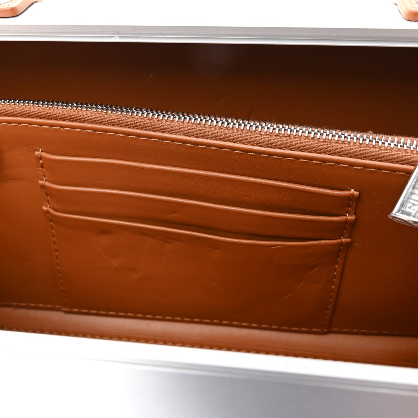 This is an authentic Rimowa Aluminum Personal Cross-Body Bag in Silver. This chic crossbody is crafted from lightweight silver aluminum. It features tan calfskin trims, an optional shoulder strap, and polished silver hardware. The top snaps open a leather interior with card slots, a zipper compartment, and patch pockets.Follow this item for alerts. Rimowa is a registered trademark of Rimowa. FASHIONPHILE is not affiliated with Rimowa.