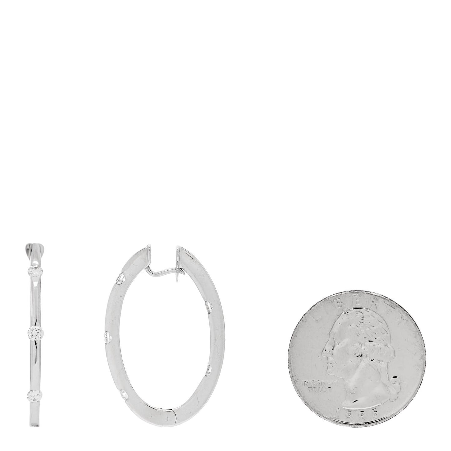18K White Gold Diamond Flat Oval Hoop Earrings