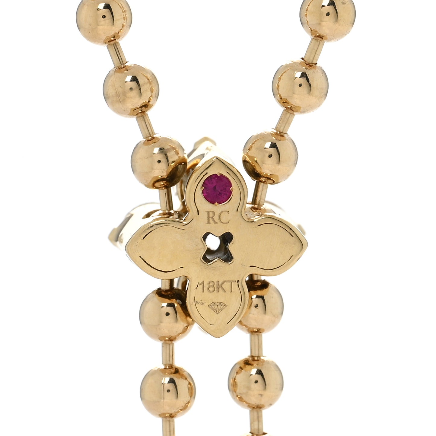 This is an authentic ROBERTO COIN 18K Yellow Gold Diamond Love in Verona Flower Zipper Necklace. The necklace is crafted of 18 karat yellow gold and features a bead chain with an adjustable flower motif set with approximately .65 total carat weight of diamonds, along with a hidden synthetic ruby.Follow this item for alerts. Roberto Coin is a registered trademark of Roberto Coin. FASHIONPHILE is not affiliated with Roberto Coin.