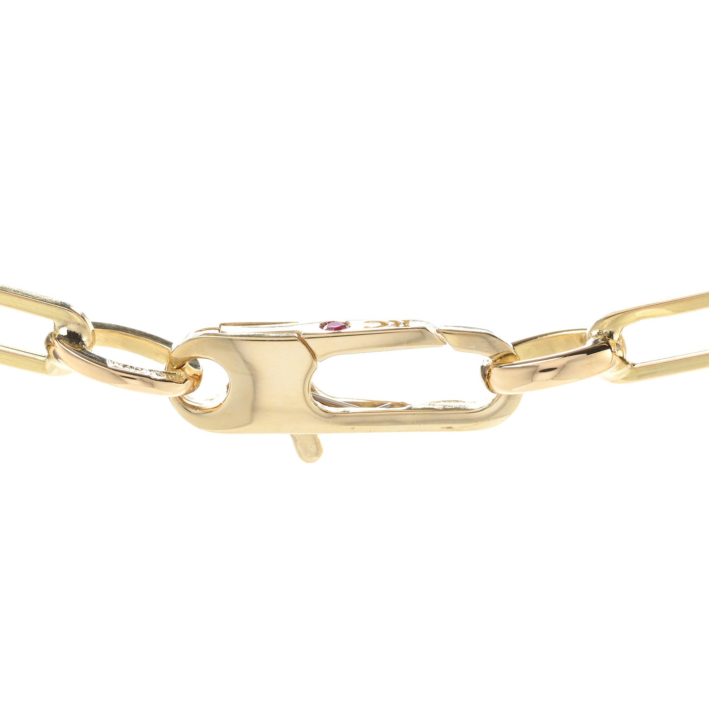 This is an authentic Roberto Coin 18K Yellow Gold Diamond Venetian Princess Heart Medallion Charm Necklace. The necklace is crafted of 18 karat yellow gold and features a paper clip style chain with a heart shaped pendant accented with diamonds, approximately .26 total carat weight. The necklace also features synthetic rubies on the lobster clasp and the back of the pendant.Follow this item for alerts. Roberto Coin is a registered trademark of Roberto Coin. FASHIONPHILE is not affiliated with Roberto Coin.