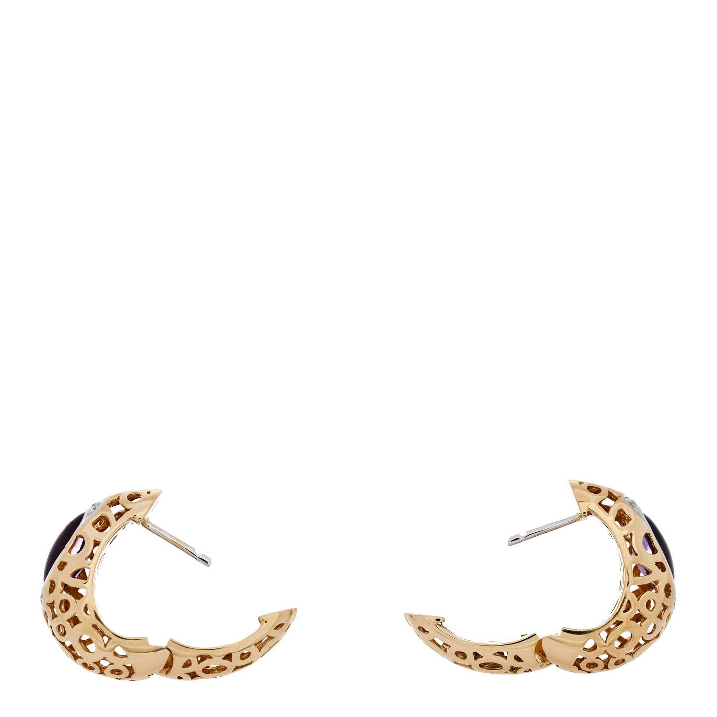 18K Yellow White Gold Diamond Amethyst Mauresque Hoop Earrings