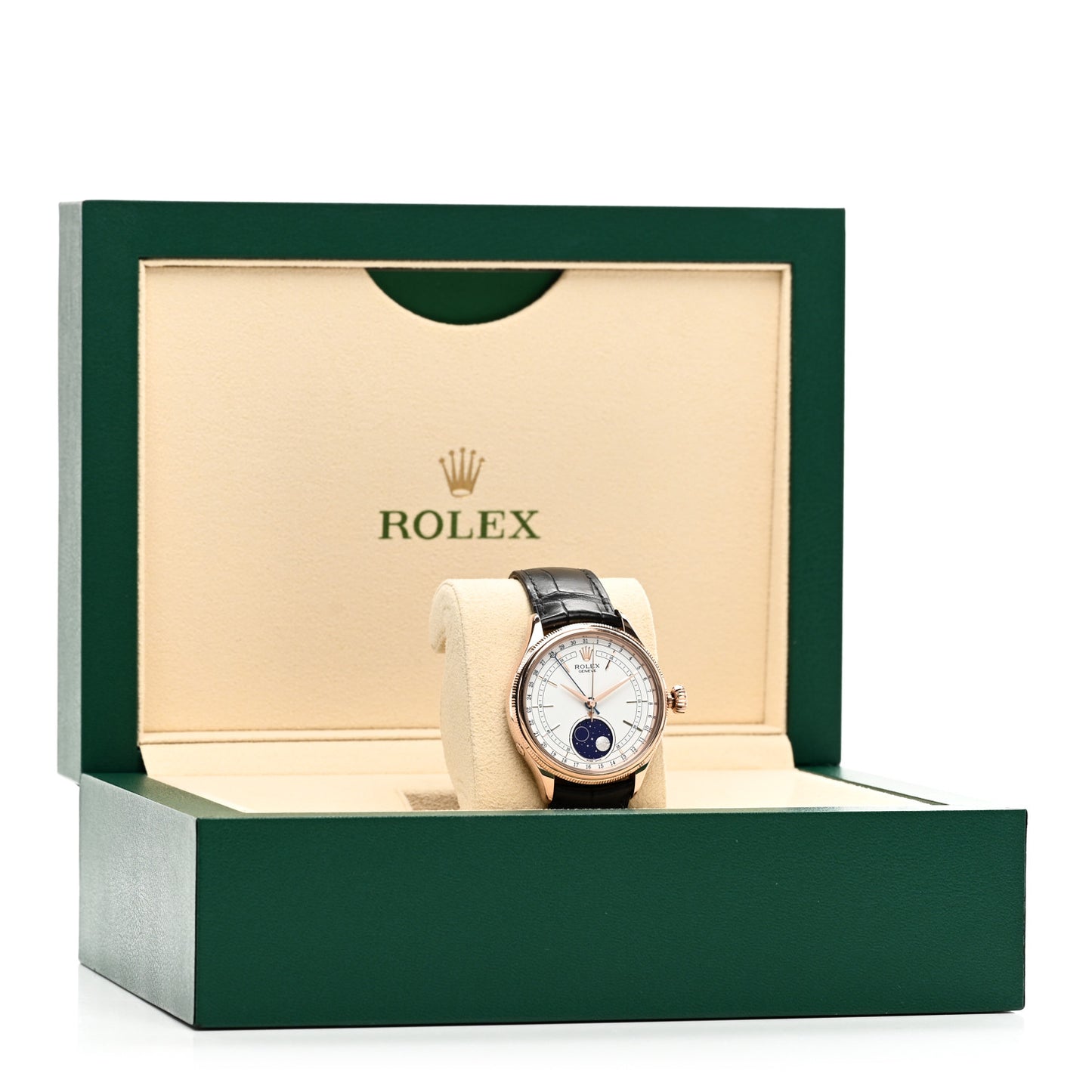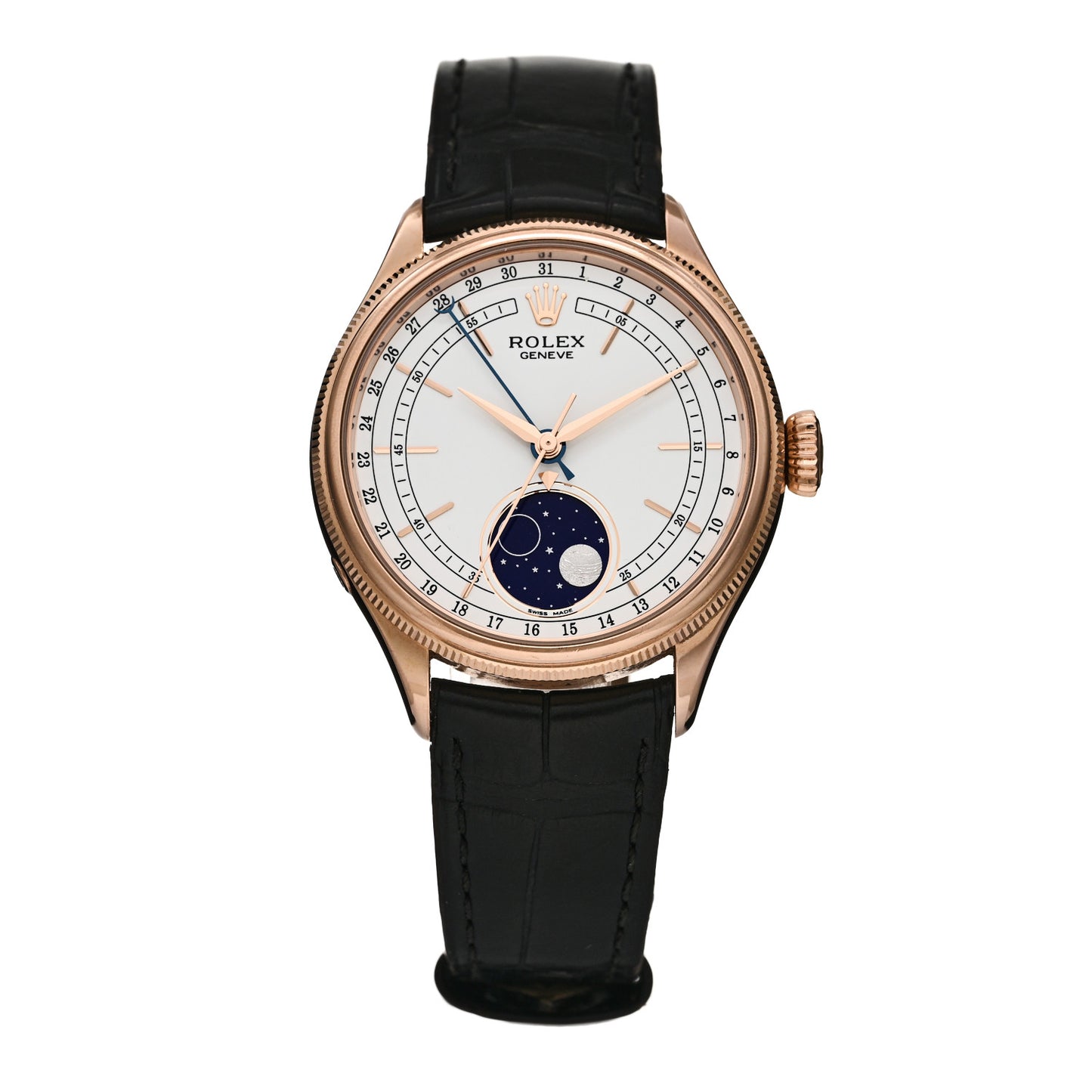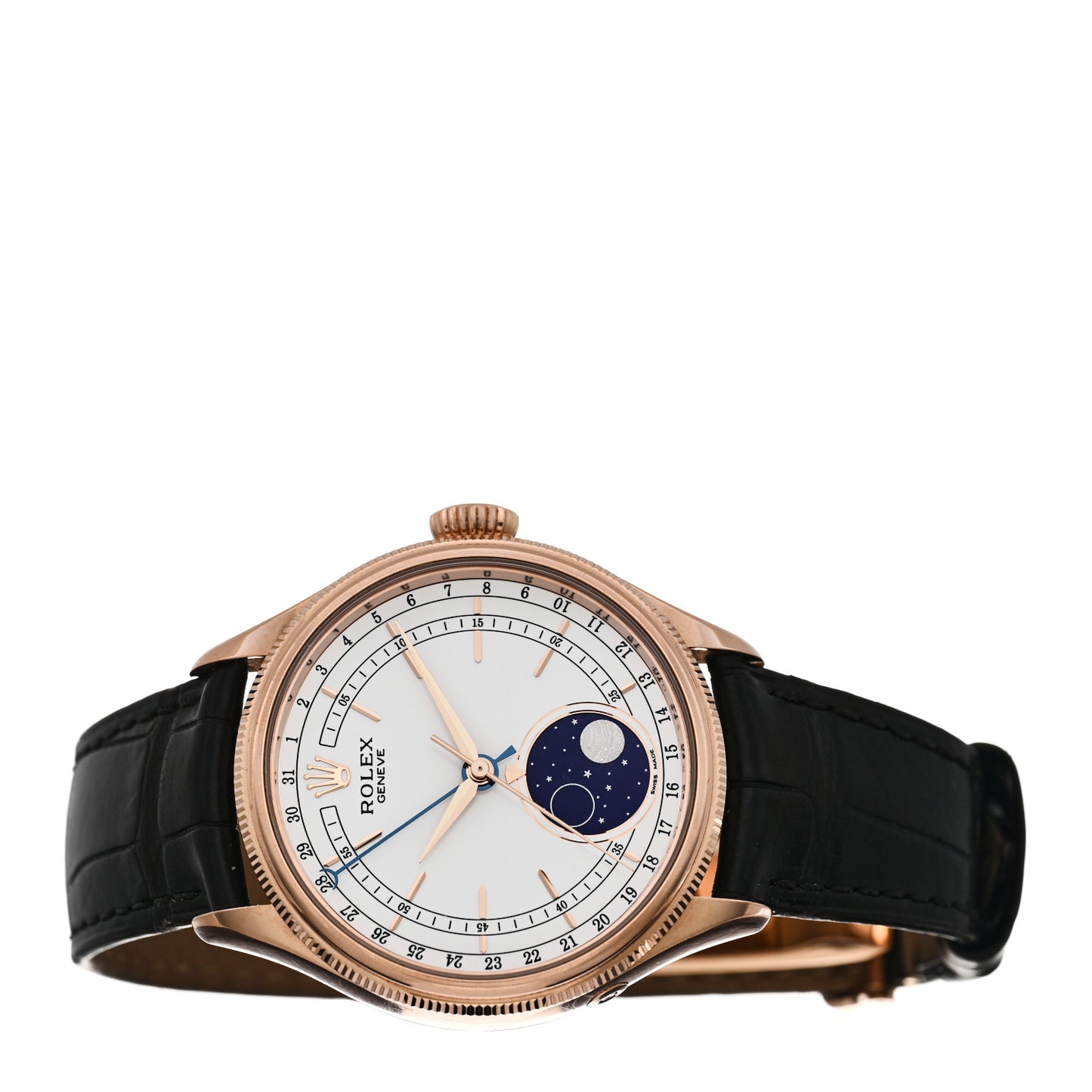 Rolex/ Accessories/ Watches /Rolex 18K Everose Gold Alligator 39mm Cellini Moonphase Watch White 50535
