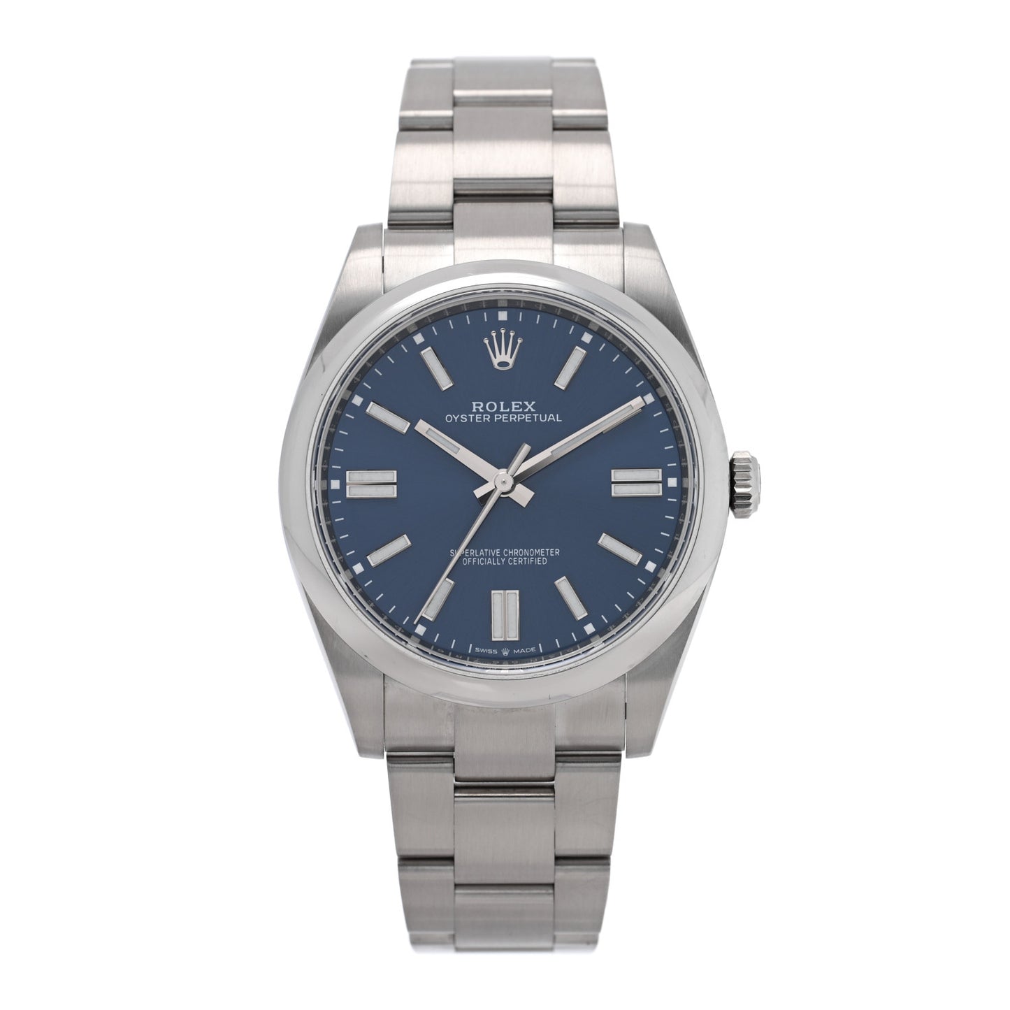 This is an authentic ROLEX Stainless Steel 41mm Oyster Perpetual Watch Blue 124300. This watch is crafted from stainless steel and features an automatic movement, blue dial, luminous hands and hour markers, domed bezel, and Oyster bracelet.Follow this item for alerts. Rolex is a registered trademark of Rolex. FASHIONPHILE is not affiliated with Rolex.