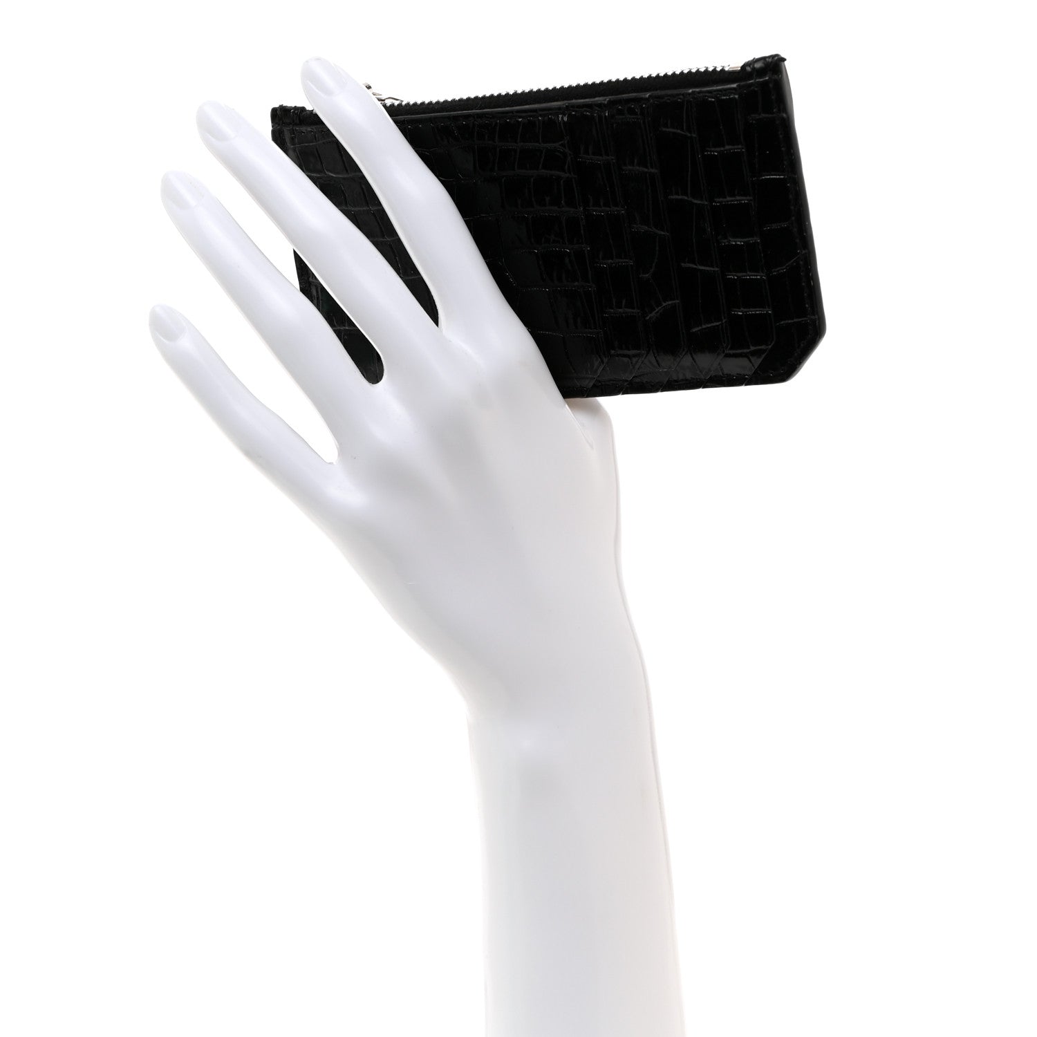 Calfskin Crocodile Embossed 5 Fragments Zip Pouch Card Holder Black