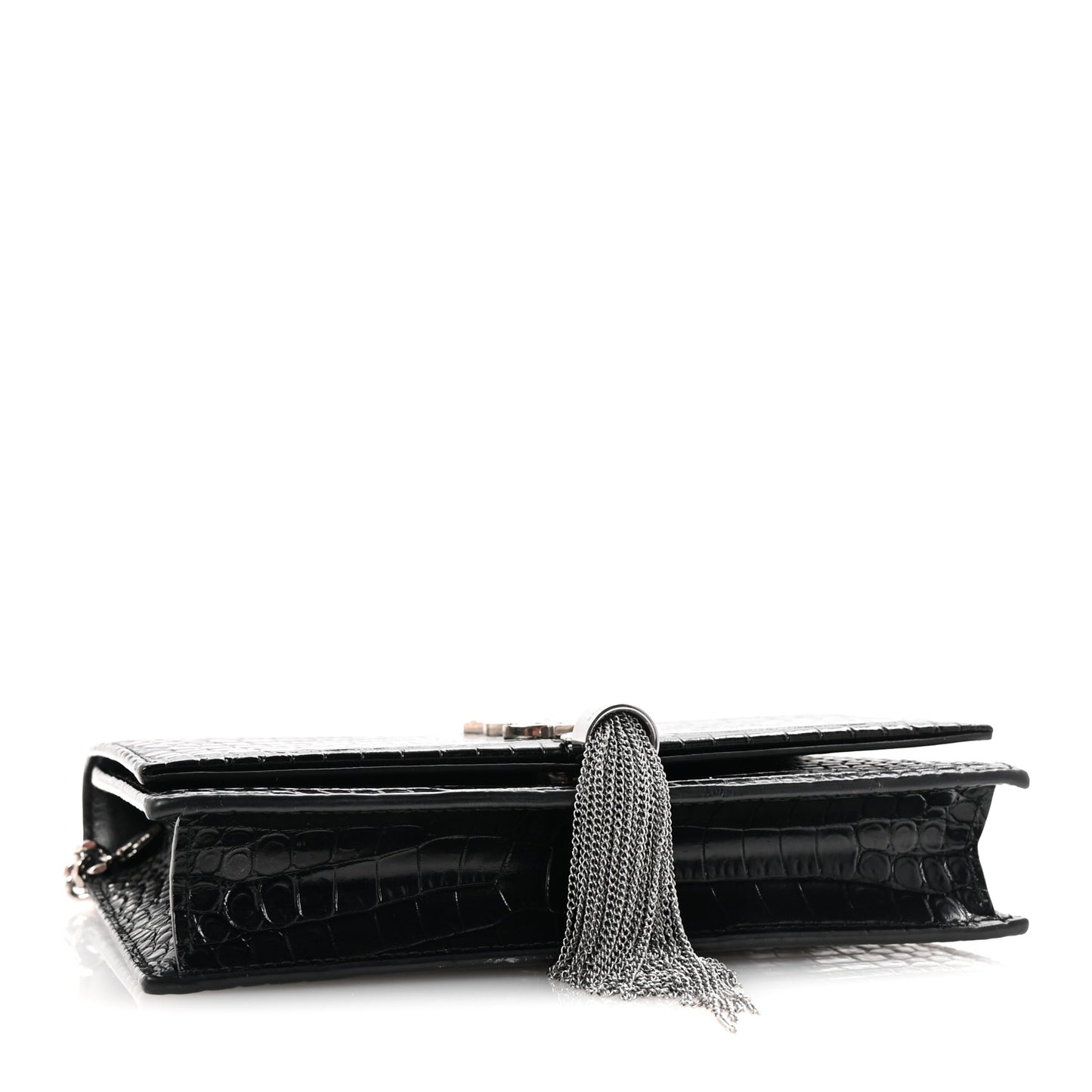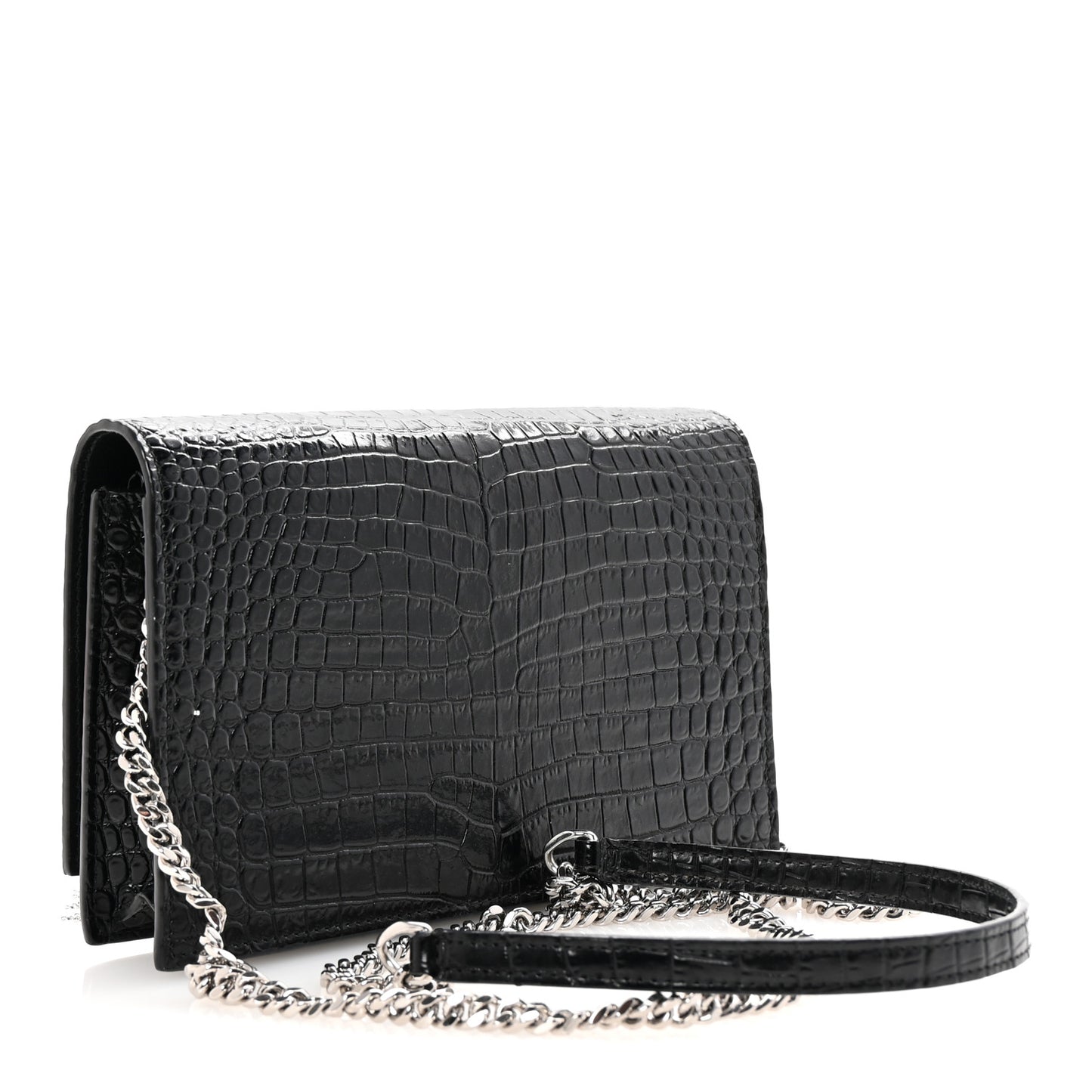 Saint Laurent/ Bags/ Wallet Style /Saint Laurent Calfskin Crocodile Embossed Kate Monogram Tassel Chain Wallet Black