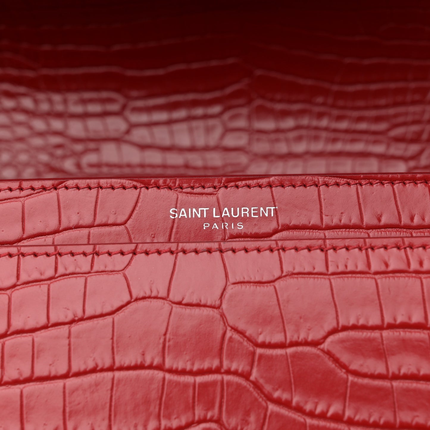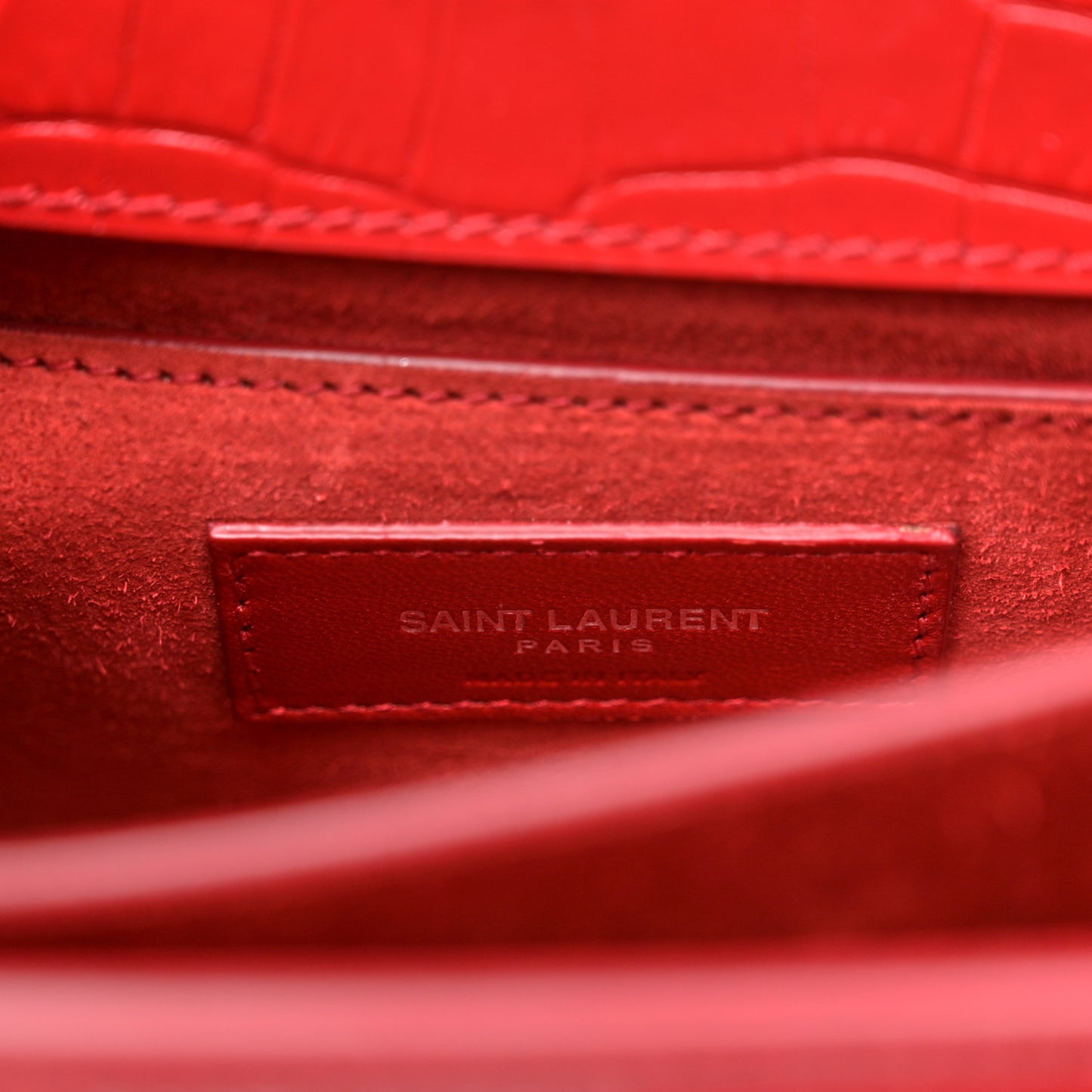 Saint Laurent/ Bags/ Shoulder Bags /Saint Laurent Calfskin Crocodile Embossed Medium Monogram Sunset Rouge Eros