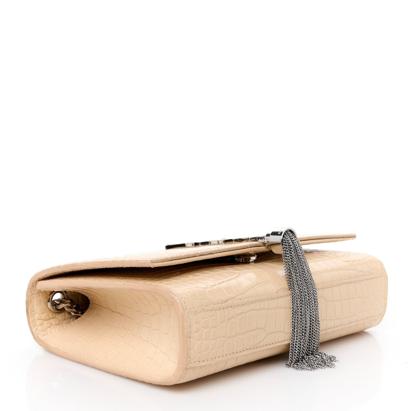 Saint Laurent/ Bags/ Shoulder Bags /Saint Laurent Calfskin Crocodile Embossed Small Classic Monogram Kate Tassel Satchel Nude Powder