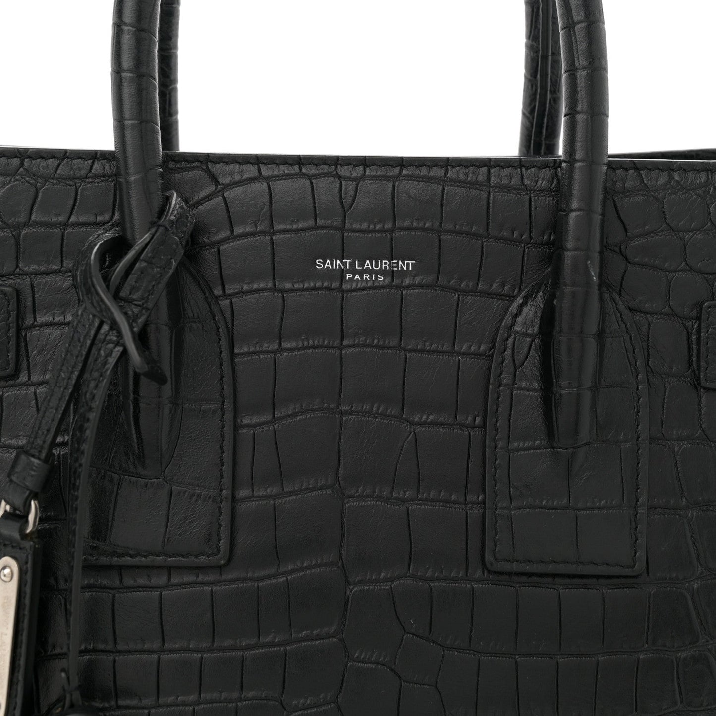 Saint Laurent/ Bags/ Shoulder Bags /Saint Laurent Calfskin Crocodile Embossed Small Supple Sac de Jour Black