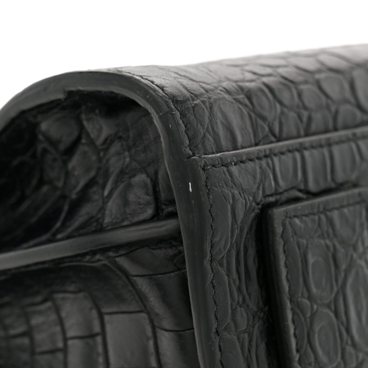 Calfskin Crocodile Embossed Small Supple Sac de Jour Black