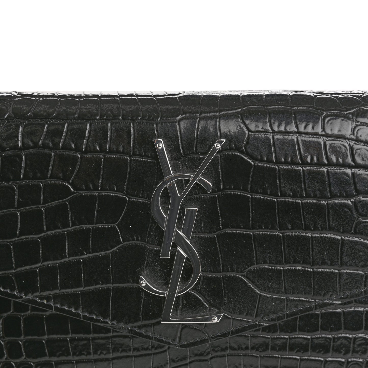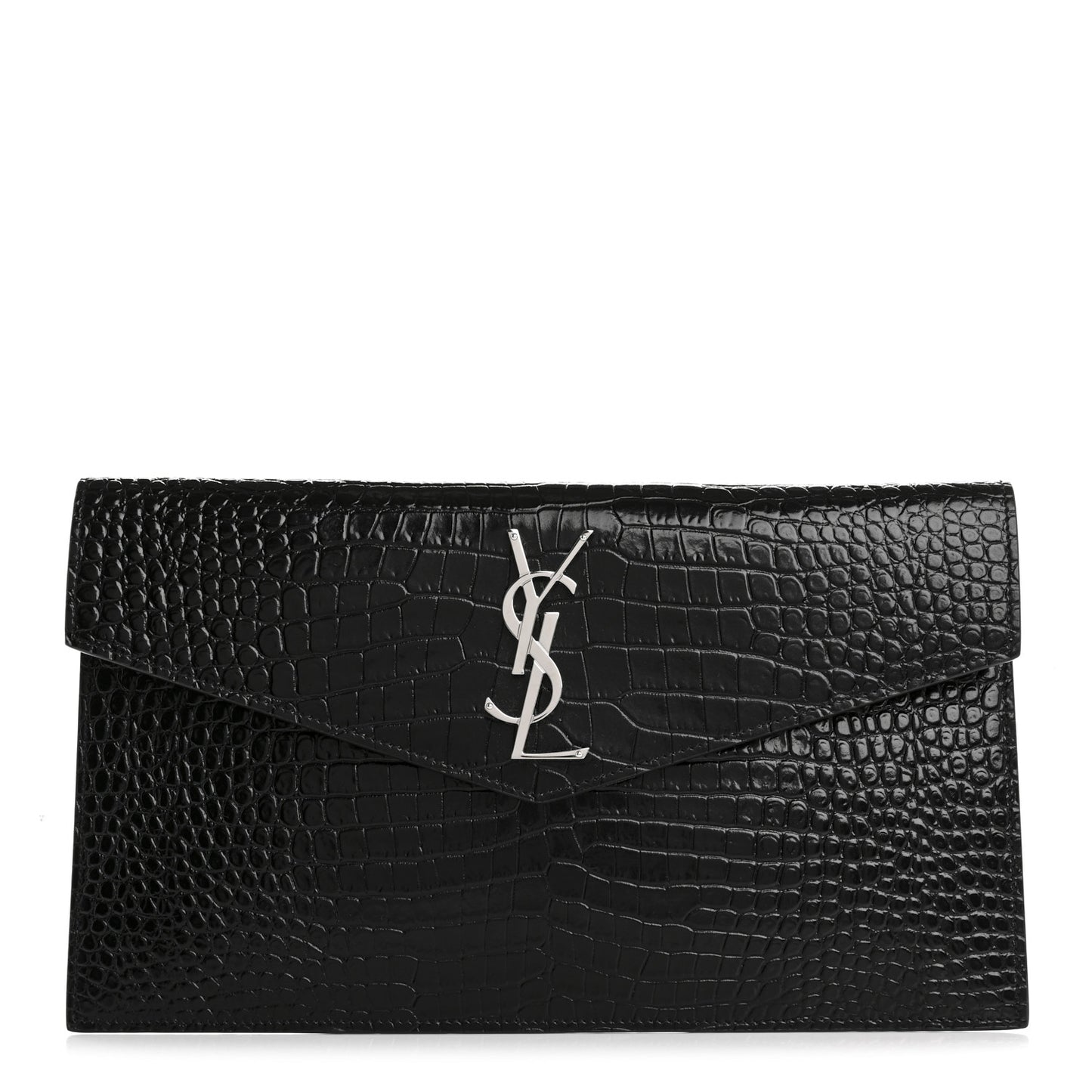 Saint Laurent/ Bags/ Clutch & Evening /Saint Laurent Calfskin Crocodile Embossed Uptown Monogram Pouch Black