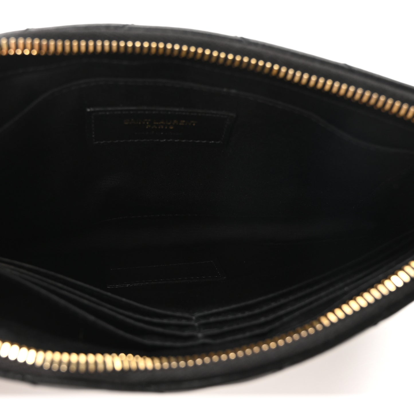 Saint Laurent/ Accessories/ Wallet Style /Saint Laurent Calfskin Matelasse Chevron Monogram A5 Wristlet Black