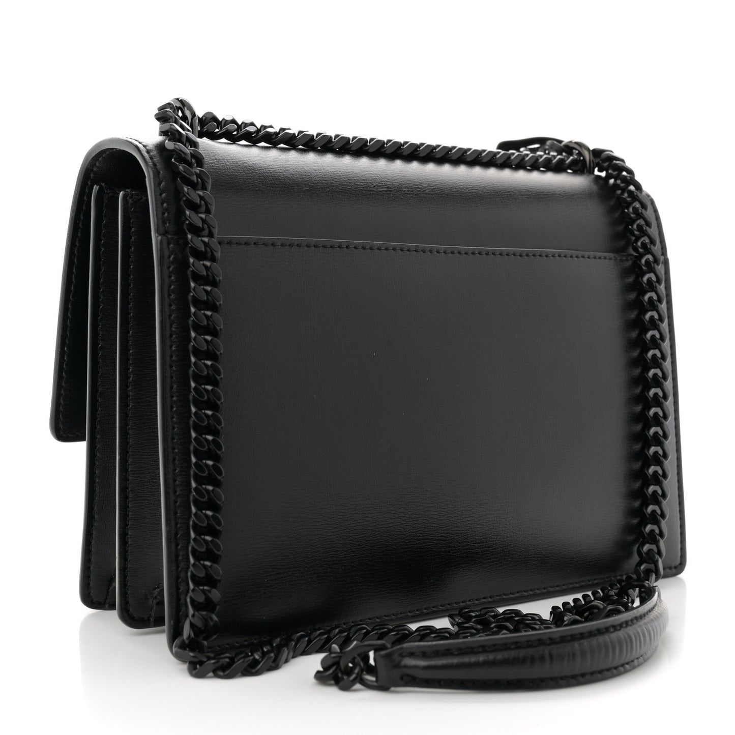 This is an authentic SAINT LAURENT Calfskin Medium Monogram Monochrome Sunset in Black. This chic bag is crafted of calfskin leather in black. The bag features a black chain link strap with a leather shoulder pad, a front facing flap with a signature YSL logo, gusseted sides, and exterior pocket. This bag opens with a magnetic snap to a black partitioned suede leather interior with a patch pocket.Follow this item for alerts. Saint Laurent is a registered trademark of Saint Laurent. FASHIONPHILE is not affiliated with Saint Laurent.