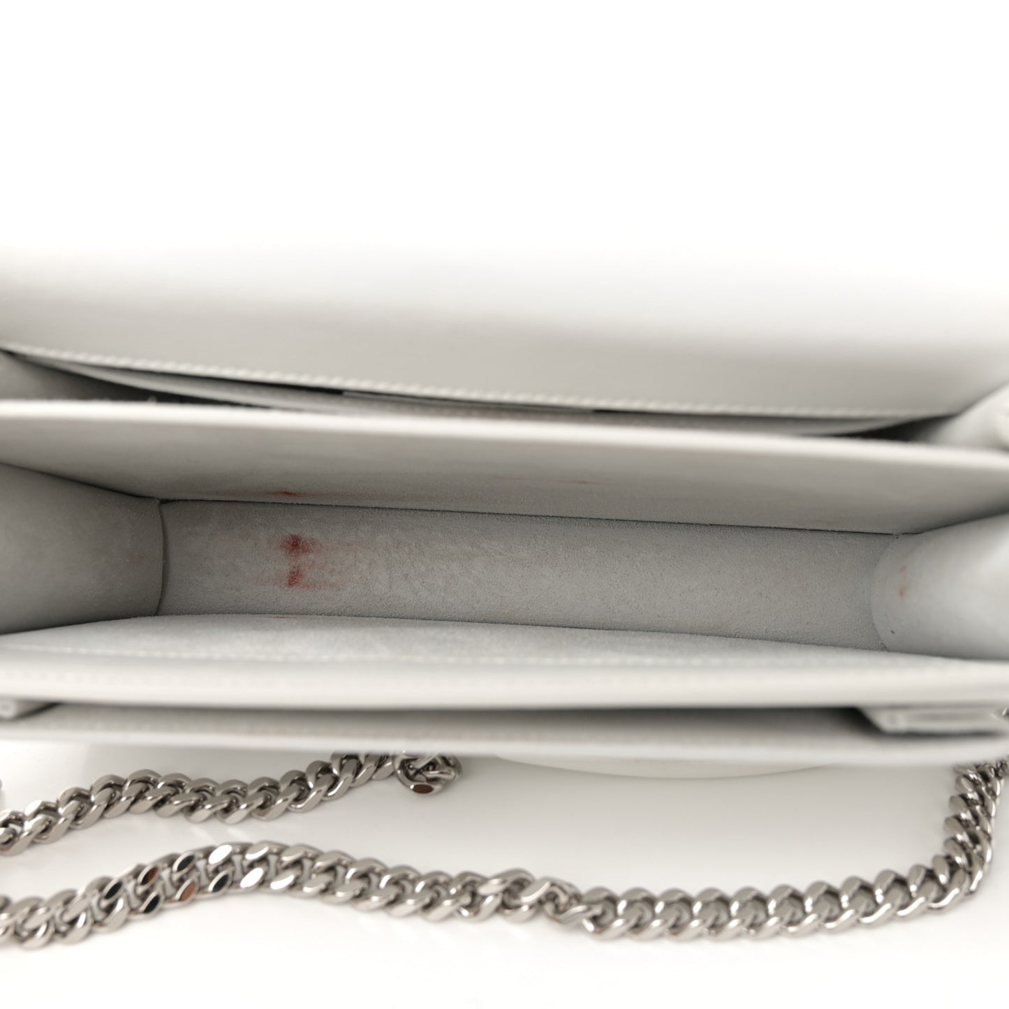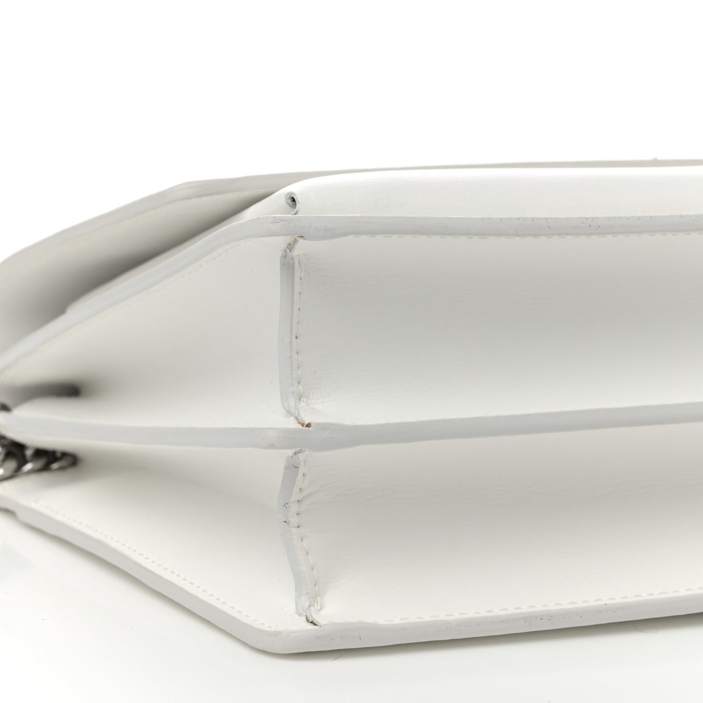 This is an authentic SAINT LAURENT Calfskin Medium Monogram Sunset in Crema Soft. This stunning shoulder bag is crafted of smooth calfskin in off-white. The bag features a silver chain strap with an off-white shoulder pad, a front-facing flap with a signature silver YSL logo, gusseted sides, and an interior and exterior pocket. This fold-over bag is complete with a magnetic snap that opens to a matching partitioned suede leather interior with a patch pocket.Follow this item for alerts. Saint Laurent is a registered trademark of Saint Laurent. FASHIONPHILE is not affiliated with Saint Laurent.