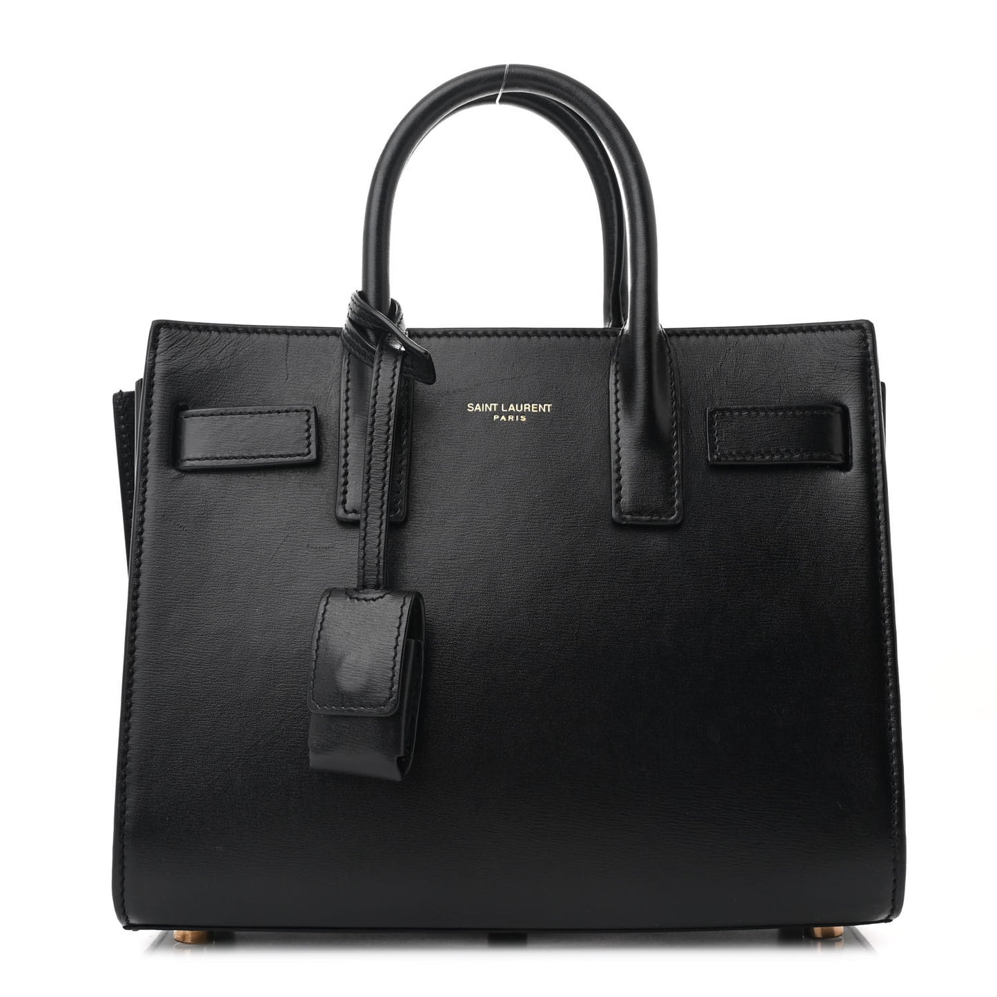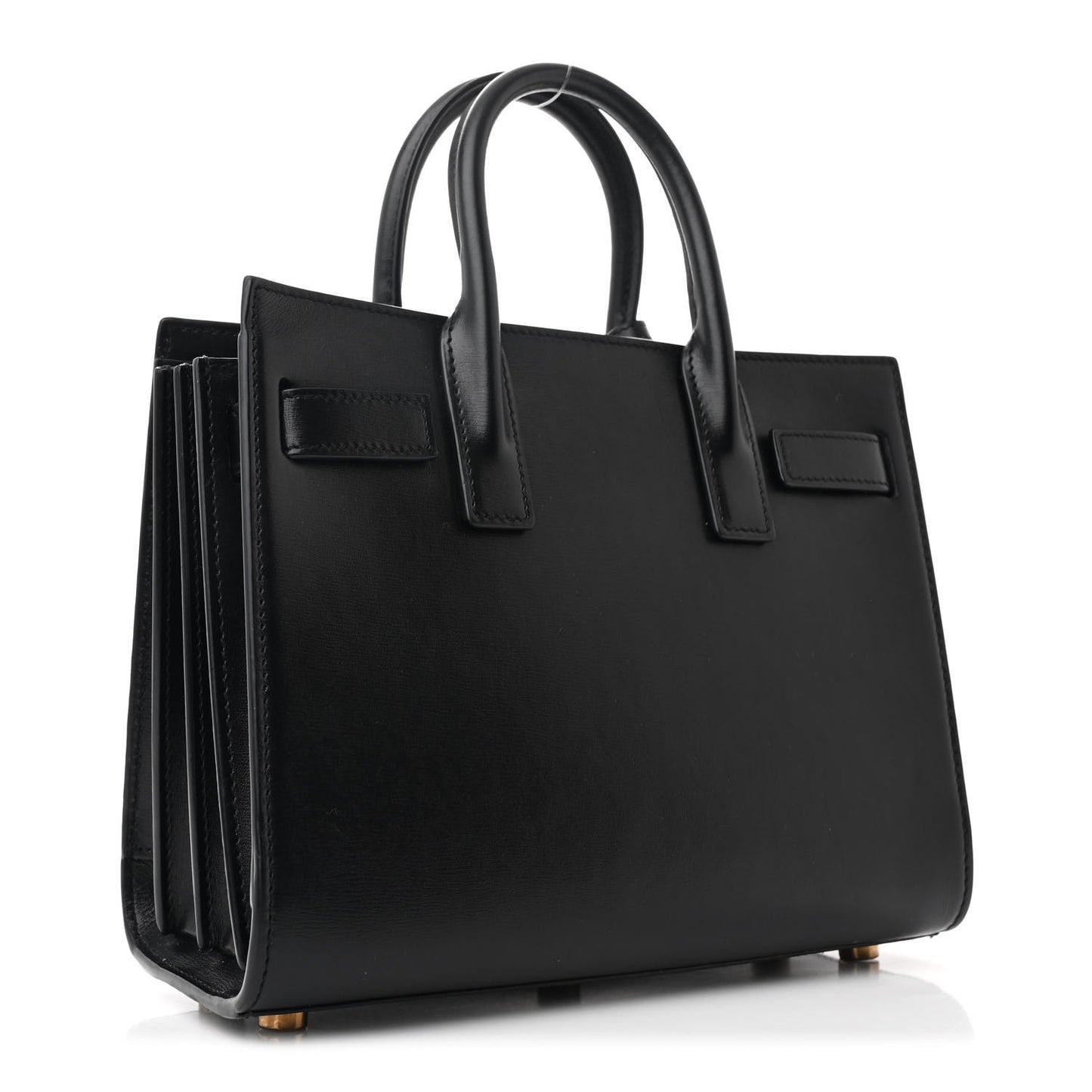 This is an authentic SAINT LAURENT Calfskin Nano Sac De Jour in Black. This small tote is crafted of calfskin leather in black. The bag features rolled leather top handles and an open top. The interior is lined with matching black leather.Follow this item for alerts. Saint Laurent is a registered trademark of Saint Laurent. FASHIONPHILE is not affiliated with Saint Laurent.