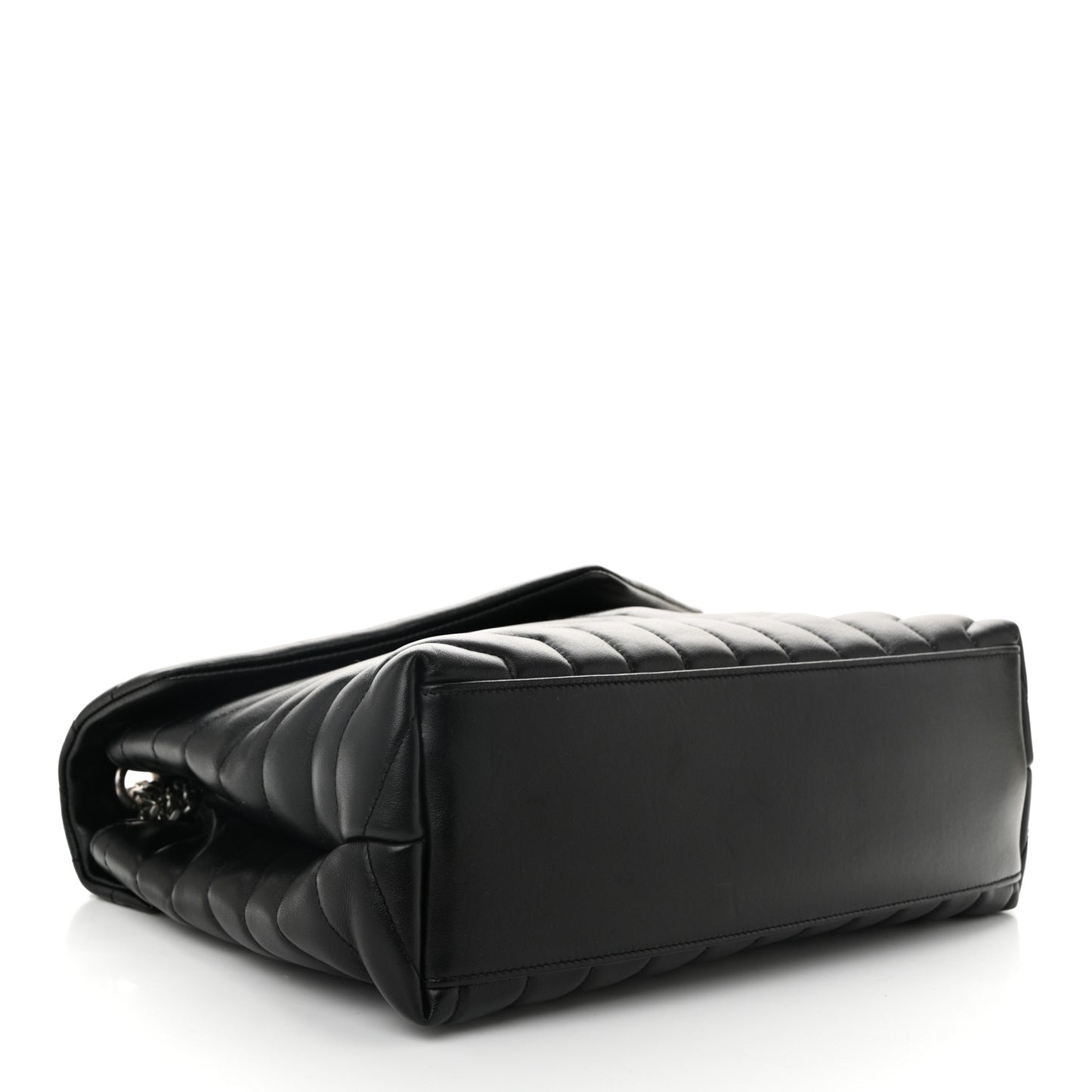 This is an authentic SAINT LAURENT Calfskin Y Quilted Monogram Medium Loulou Chain Satchel in Black. This elegant shoulder tote is crafted of chevron quilted calfskin leather in black. The bag features silver chain link shoulder straps with black leather shoulder pads. The envelope-style crossover flap features a prominent silver YSL monogram detail and opens to a partitioned black fabric interior with zipper pockets.Follow this item for alerts. Saint Laurent is a registered trademark of Saint Laurent. FASHIONPHILE is not affiliated with Saint Laurent.