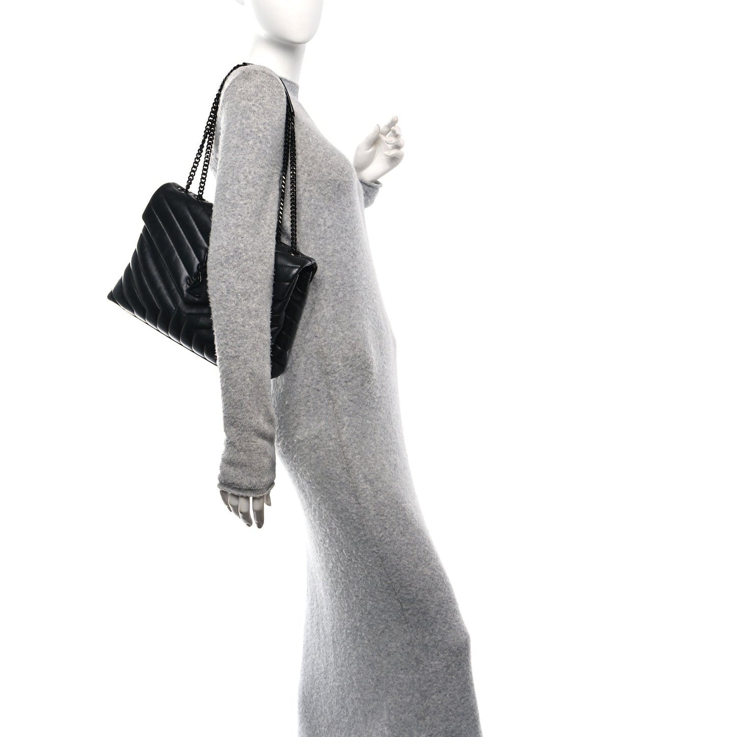 Saint Laurent/ Bags/ Handbags /Saint Laurent Calfskin Y Quilted Monogram Monochrome Medium Loulou Chain Satchel Black