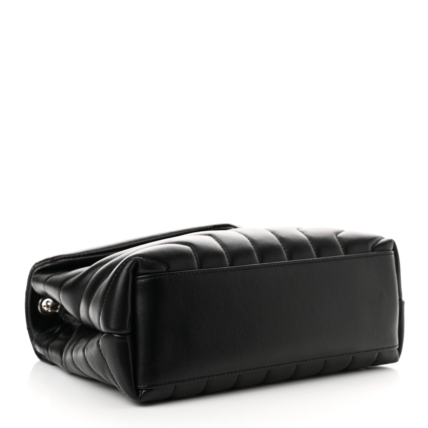 Calfskin Y Quilted Monogram Small Loulou Chain Satchel Black