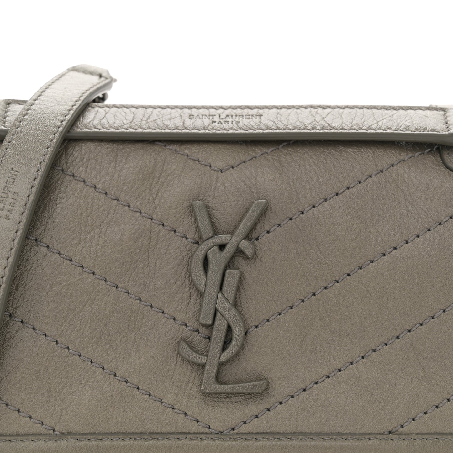 Saint Laurent/ Bags/ Shoulder Bags /Saint Laurent Crinkled Calfskin Matelasse Monogram Baby Niki Chain Satchel Grey Kaki