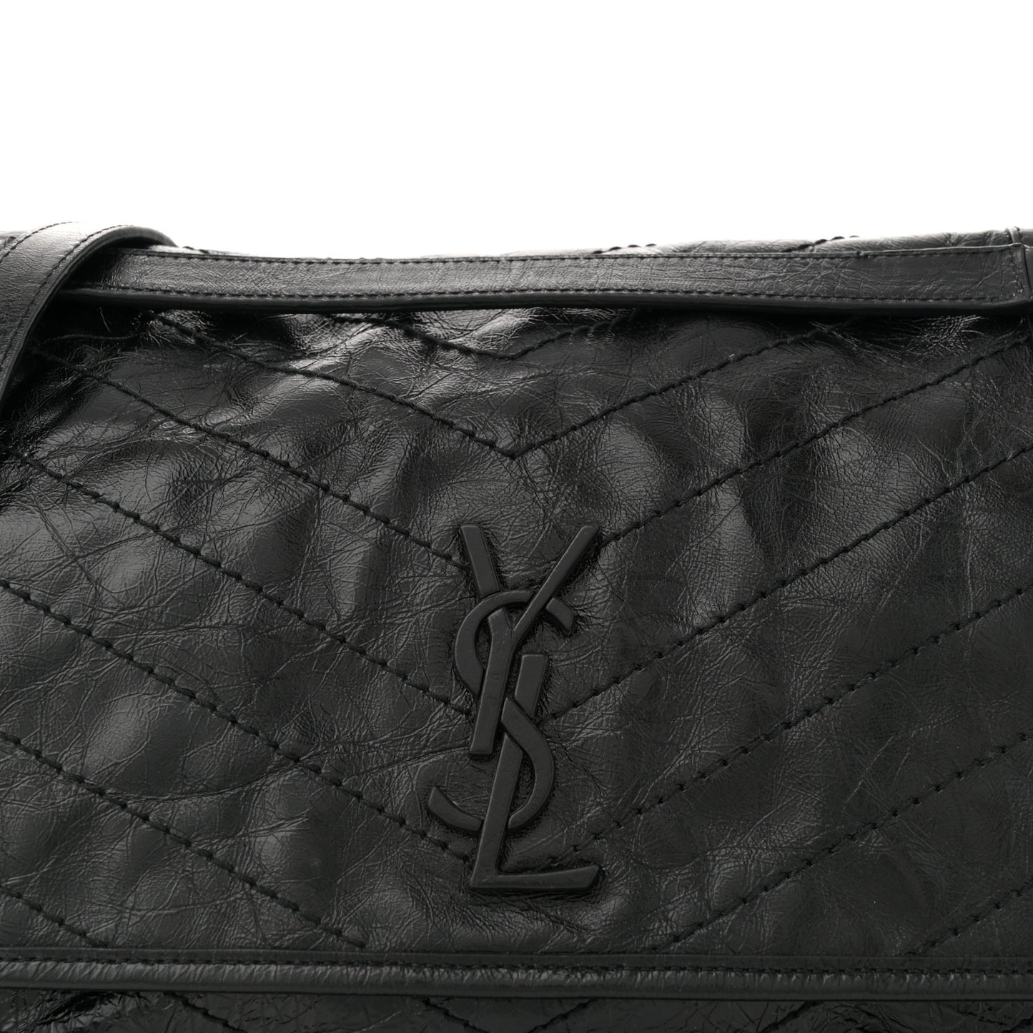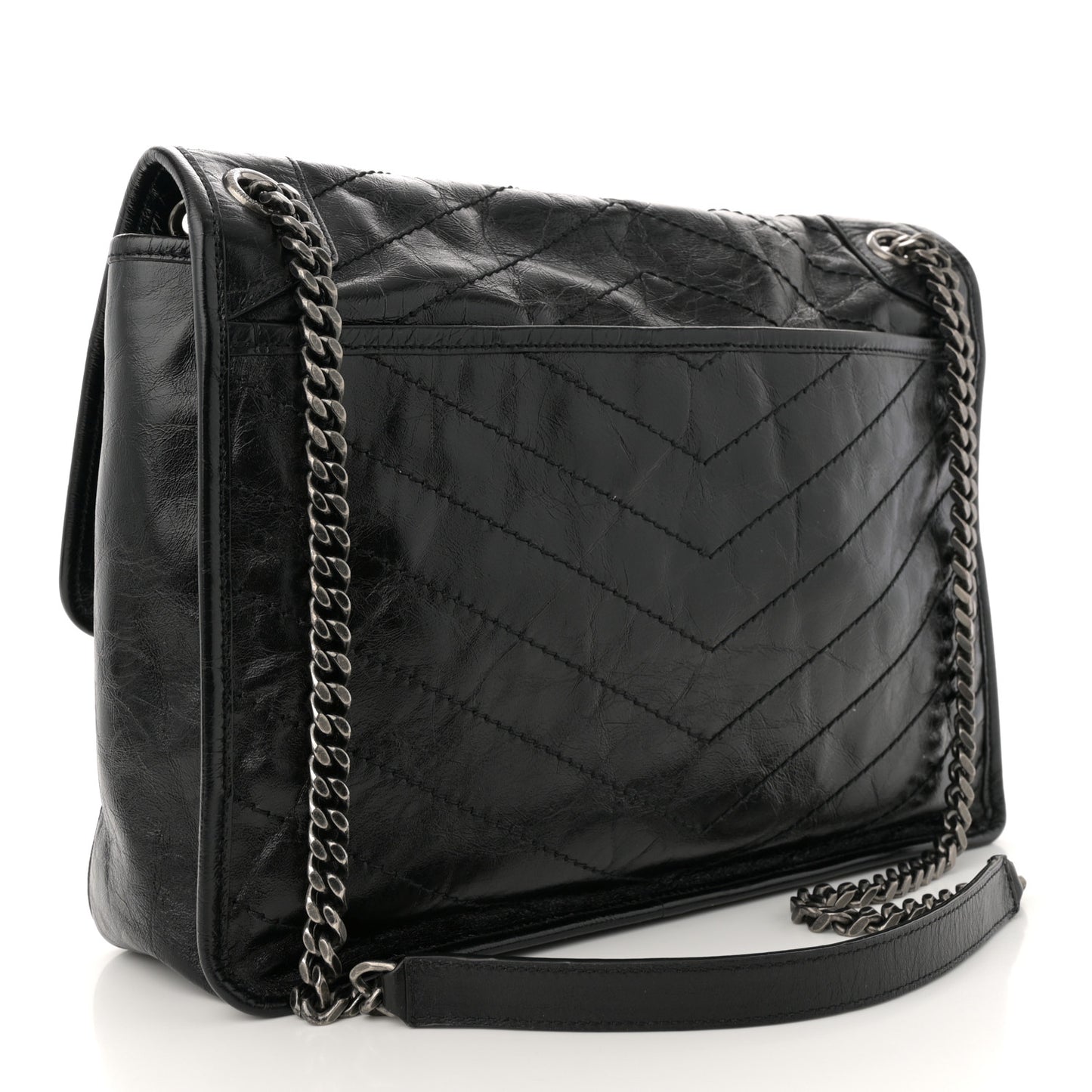 Saint Laurent/ Bags/ Shoulder Bags /Saint Laurent Crinkled Calfskin Matelasse Monogram Large Niki Chain Satchel Black