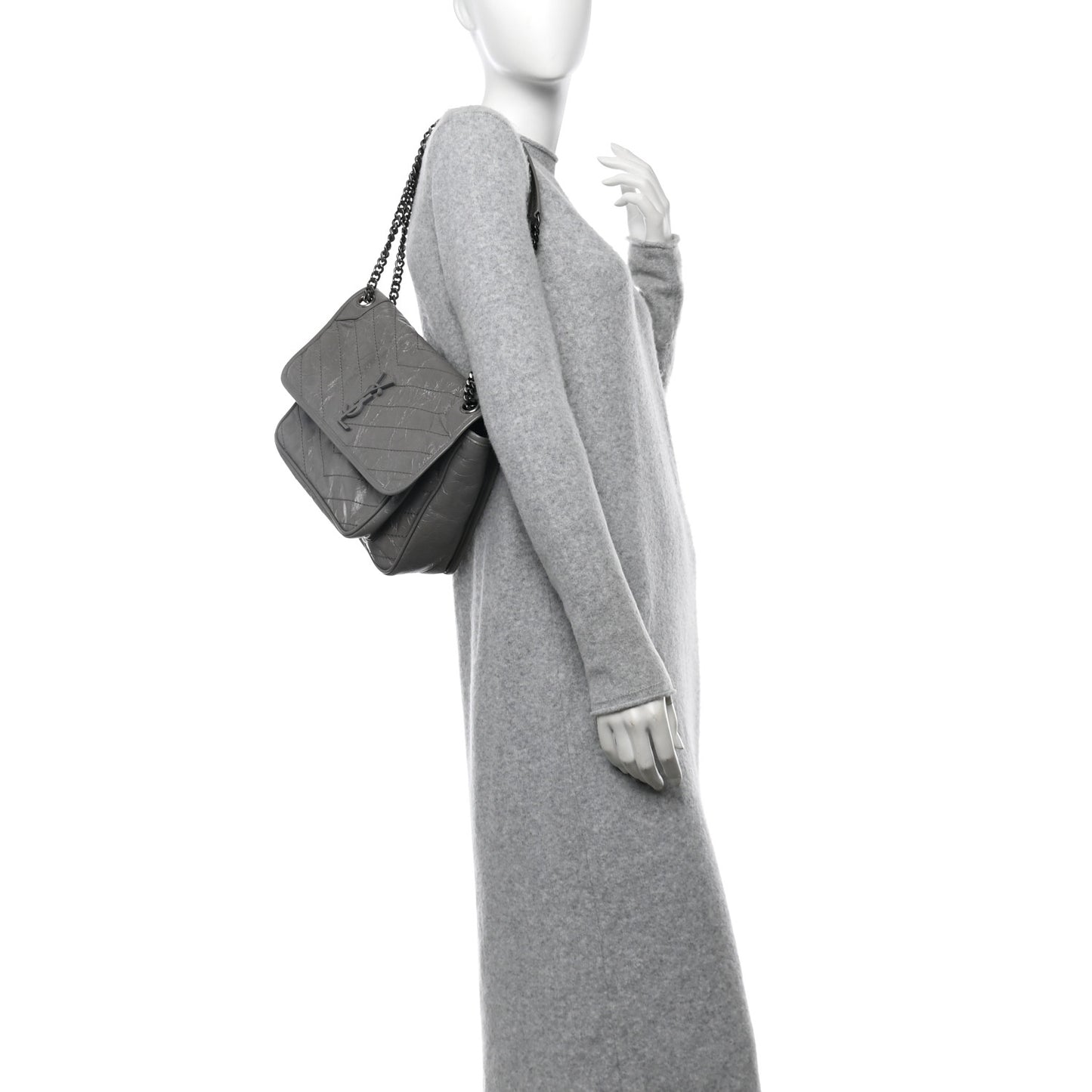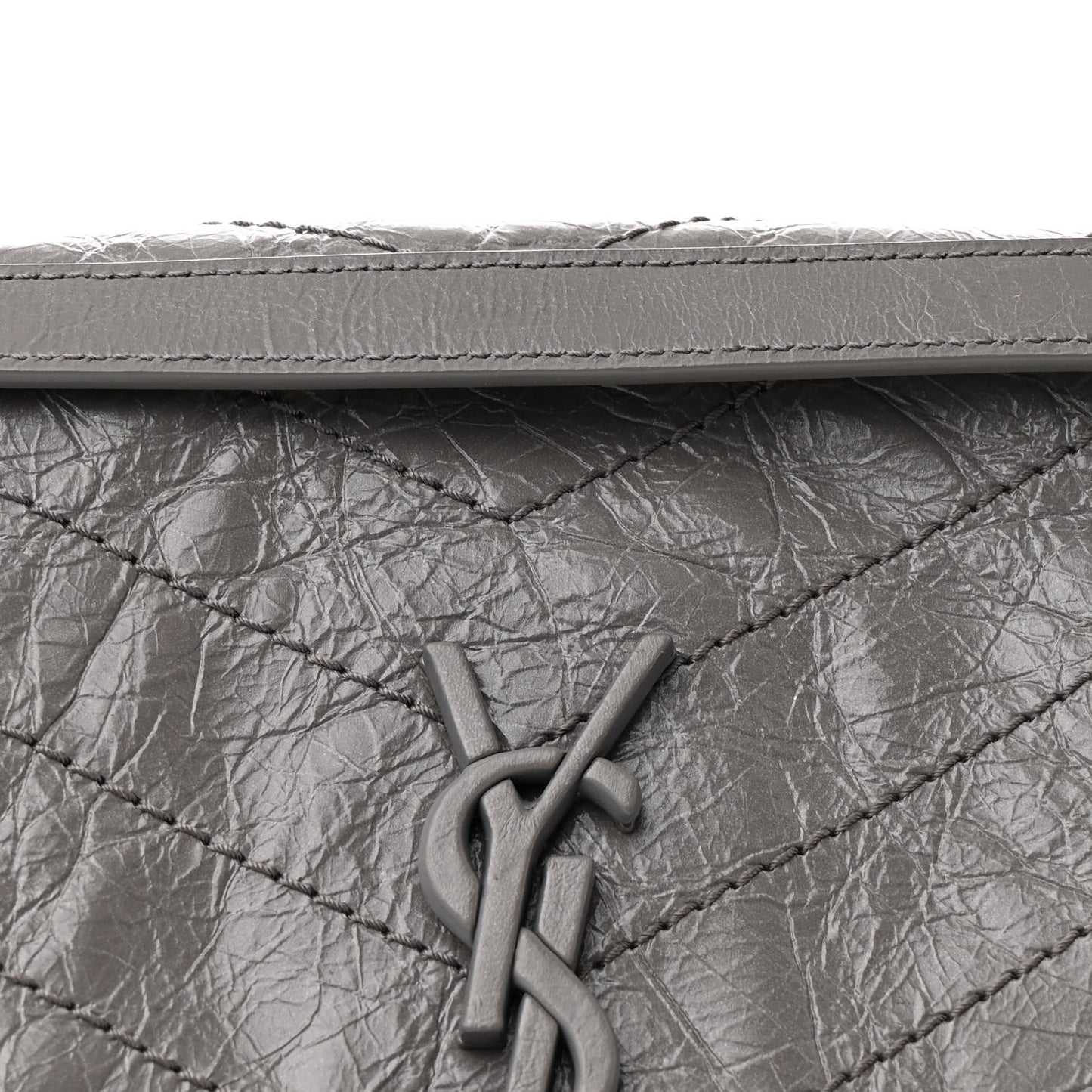 Saint Laurent/ Bags/ Shoulder Bags /Saint Laurent Crinkled Calfskin Matelasse Monogram Medium Niki Chain Satchel Fog