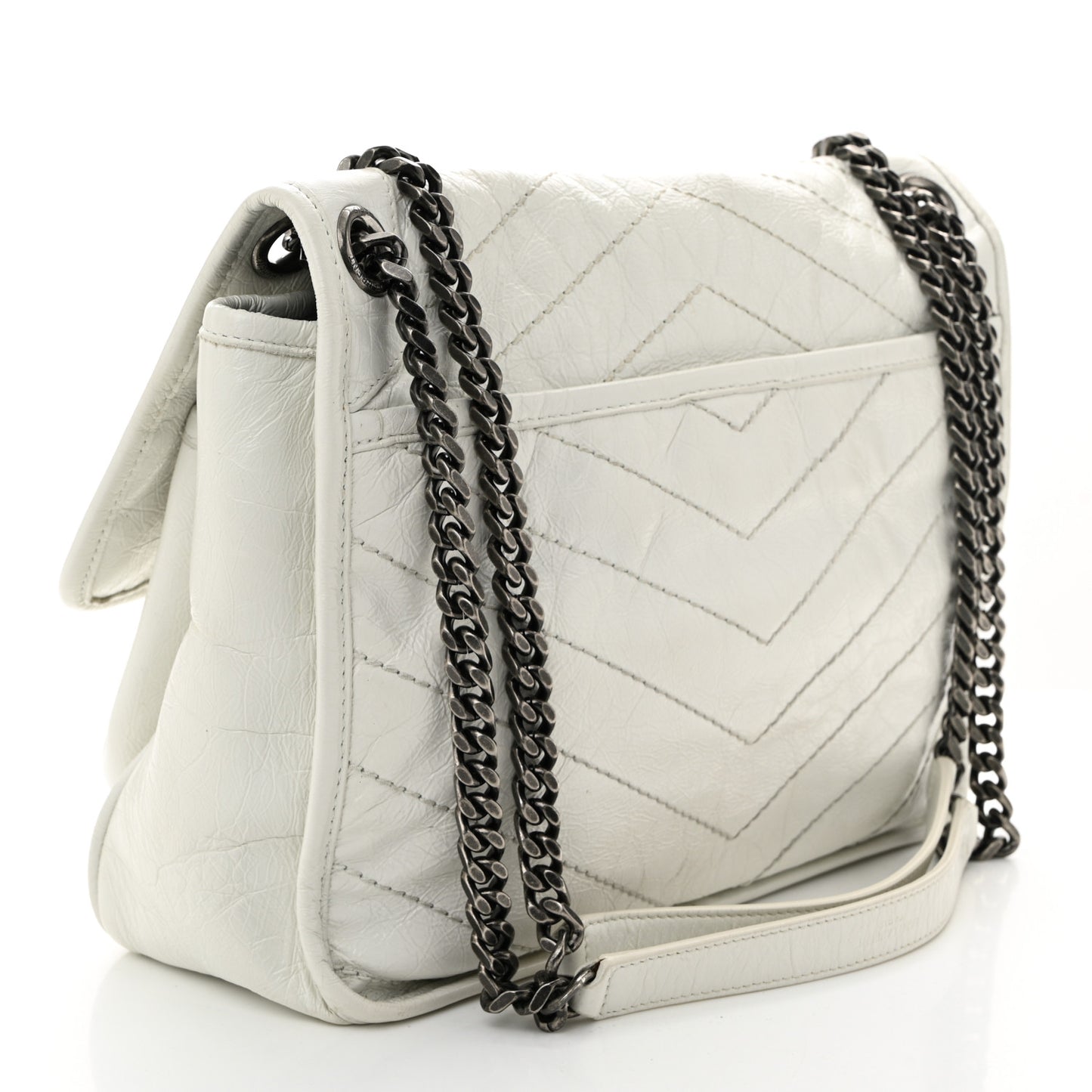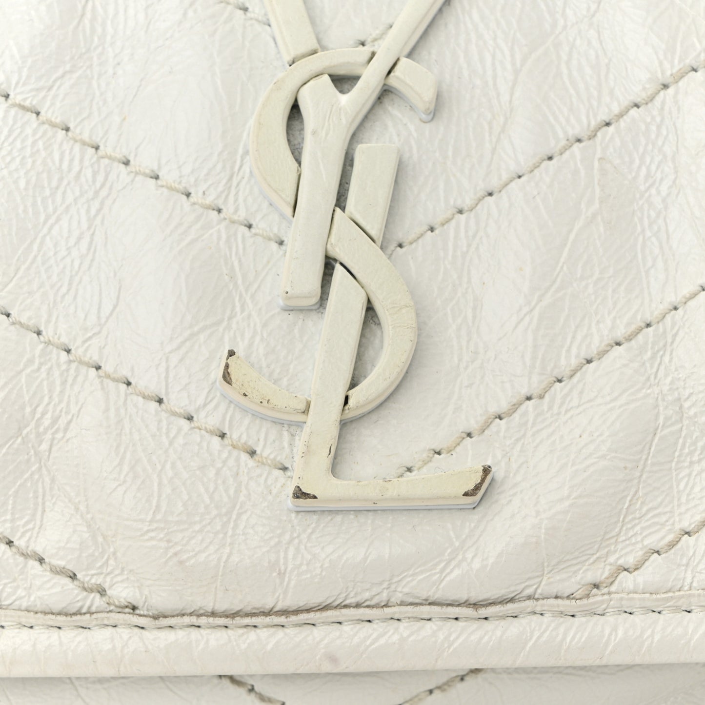 Saint Laurent/ Bags/ Shoulder Bags /Saint Laurent Crinkled Calfskin Matelasse Monogram Medium Niki Chain Satchel Ivory