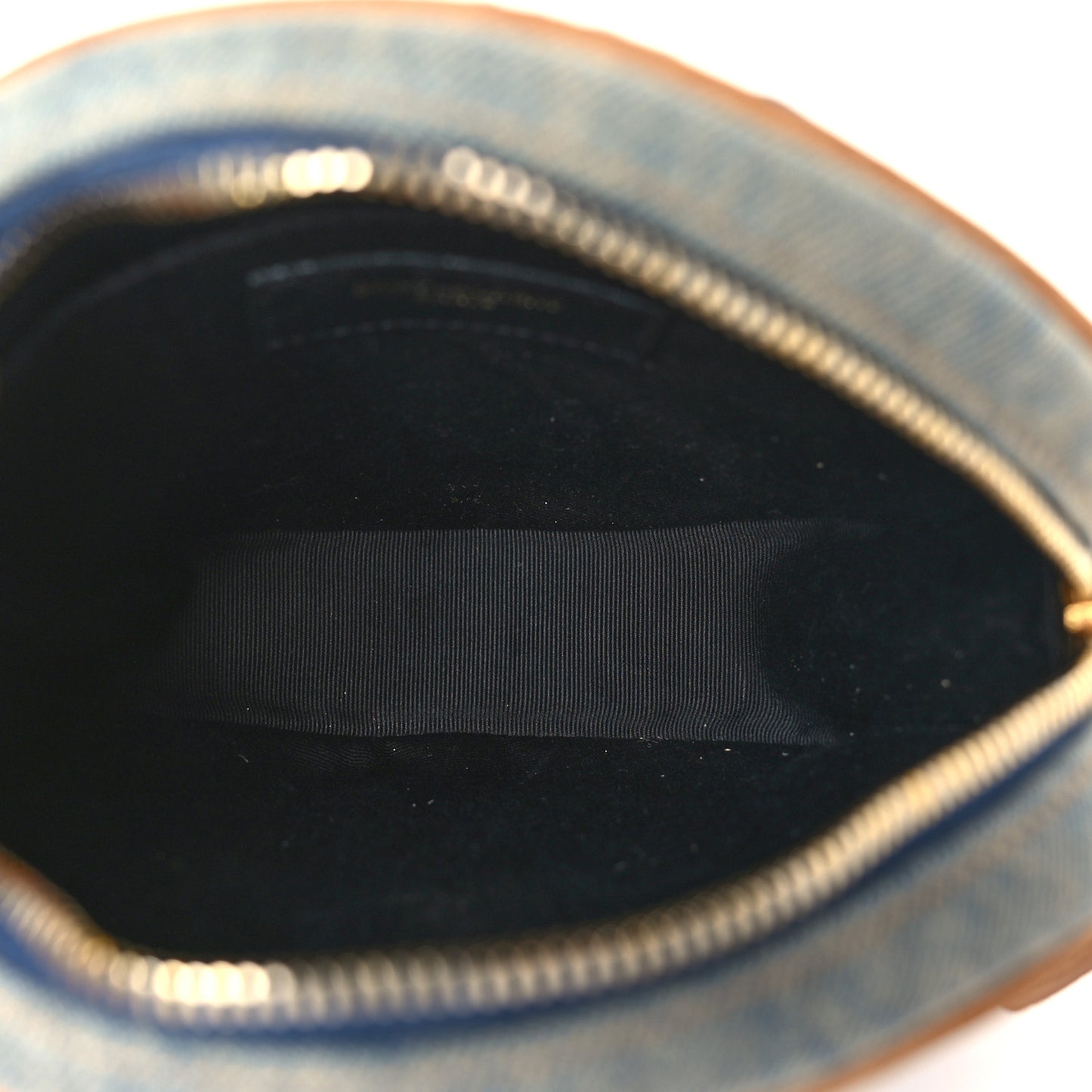 This authentic SAINT LAURENT Denim Quilted Monogram Round Crossbody Bag is crafted with blue denim and black leather trim. It features a prominent aged gold classic YSL logo on the front and a waist-length aged gold chain shoulder strap. The top zipper opens to a black fabric interior with a patch pocket.Follow this item for alerts. Saint Laurent is a registered trademark of Saint Laurent. FASHIONPHILE is not affiliated with Saint Laurent.